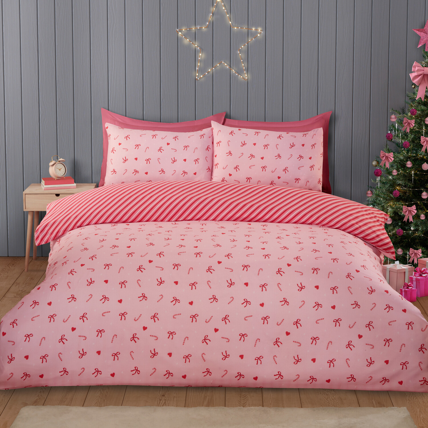 Add a sweet, festive touch to your bedroom with the Candy Cane Bows Bedding Set. Featuring charming prints of candy canes, bows and hearts, this set brings warmth and whimsy to any holiday decor. Crafted for comfort and easy care, it ensures a cosy feel all season long.