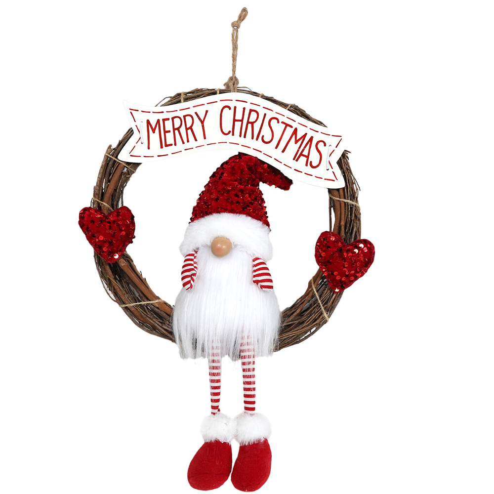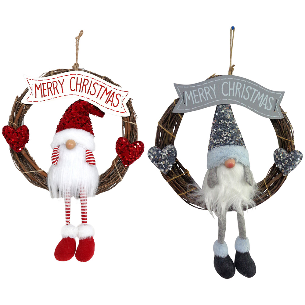 A unique alternative to your traditional festive wreath, this Gonk in Wreath decoration will make the ideal finishing touch to your home this Christmas. Available in either red or silver, this hanging features a naturally-inspired wood wreath with an adorable Gonk sitting in the centre, his legs dangling over the edge. Finished with a Merry Christmas plaque and sequin hearts, this will look spectacular hanging on your door, in your window, or on your wall.