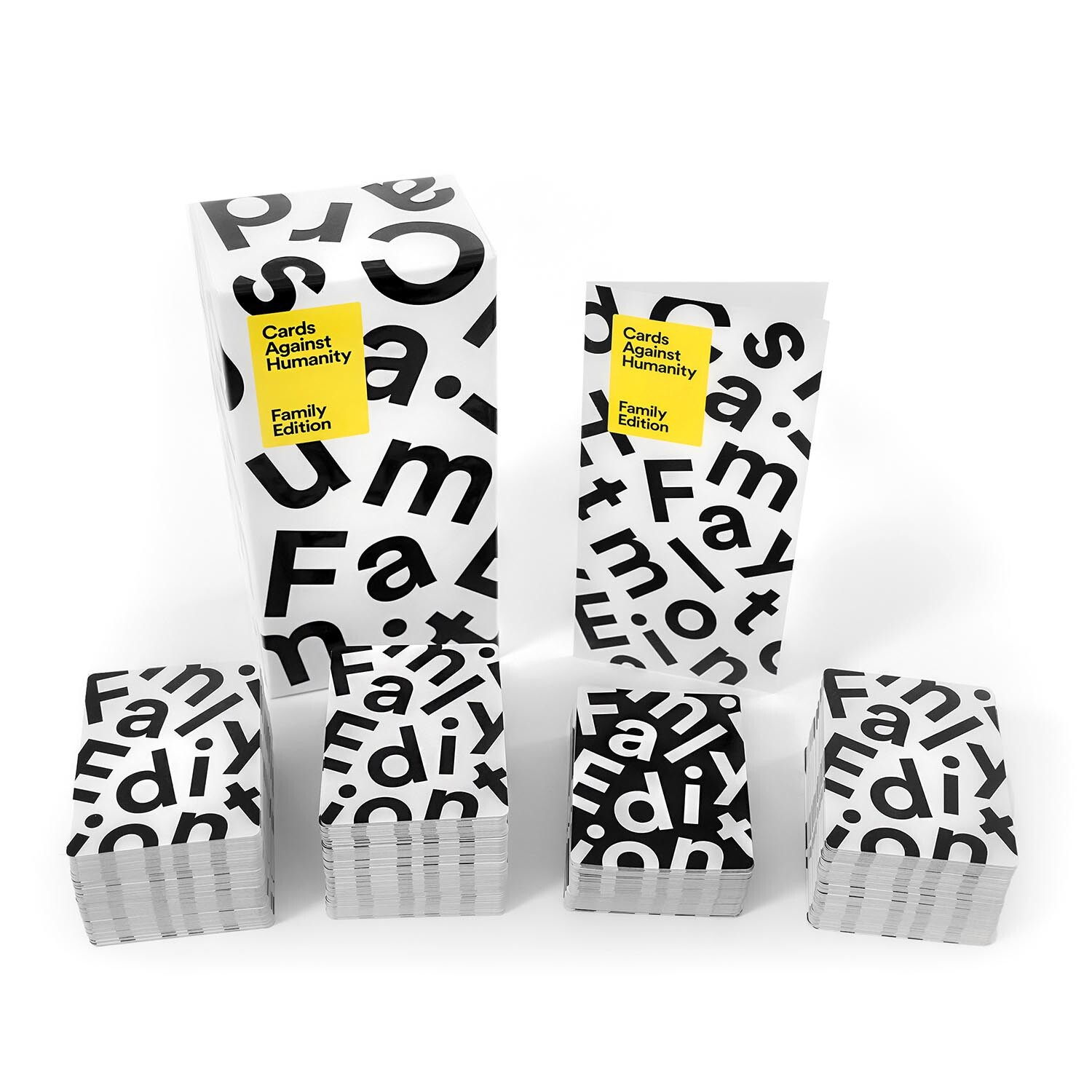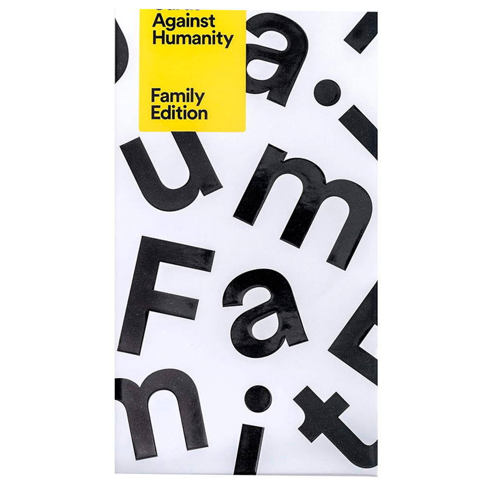 Cards Against Humanity: Family Edition is a fill-in-the-blank party game for kids and adults to play together! Based on the world-selling party game, this family version is written in consultation with child development experts and playtested with thousands of families. Kids get to engage in absurd wordplay with adults, and adults get to laugh at cards like 'Filling my butt with spaghetti'. The game is simple. One player asks a question from a black card, and everyone answers with their funniest white card.