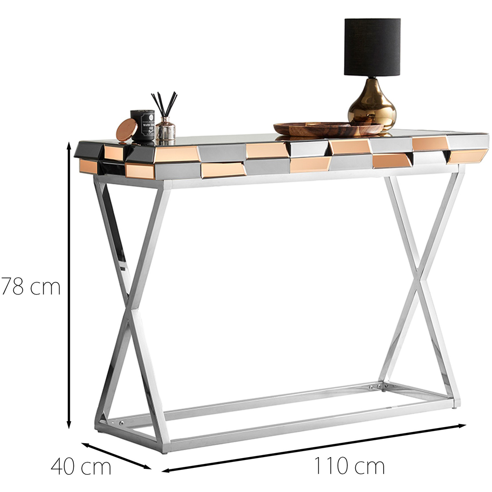 CARME Home Knightsbridge Rose Gold Silver Mirrored Console Table