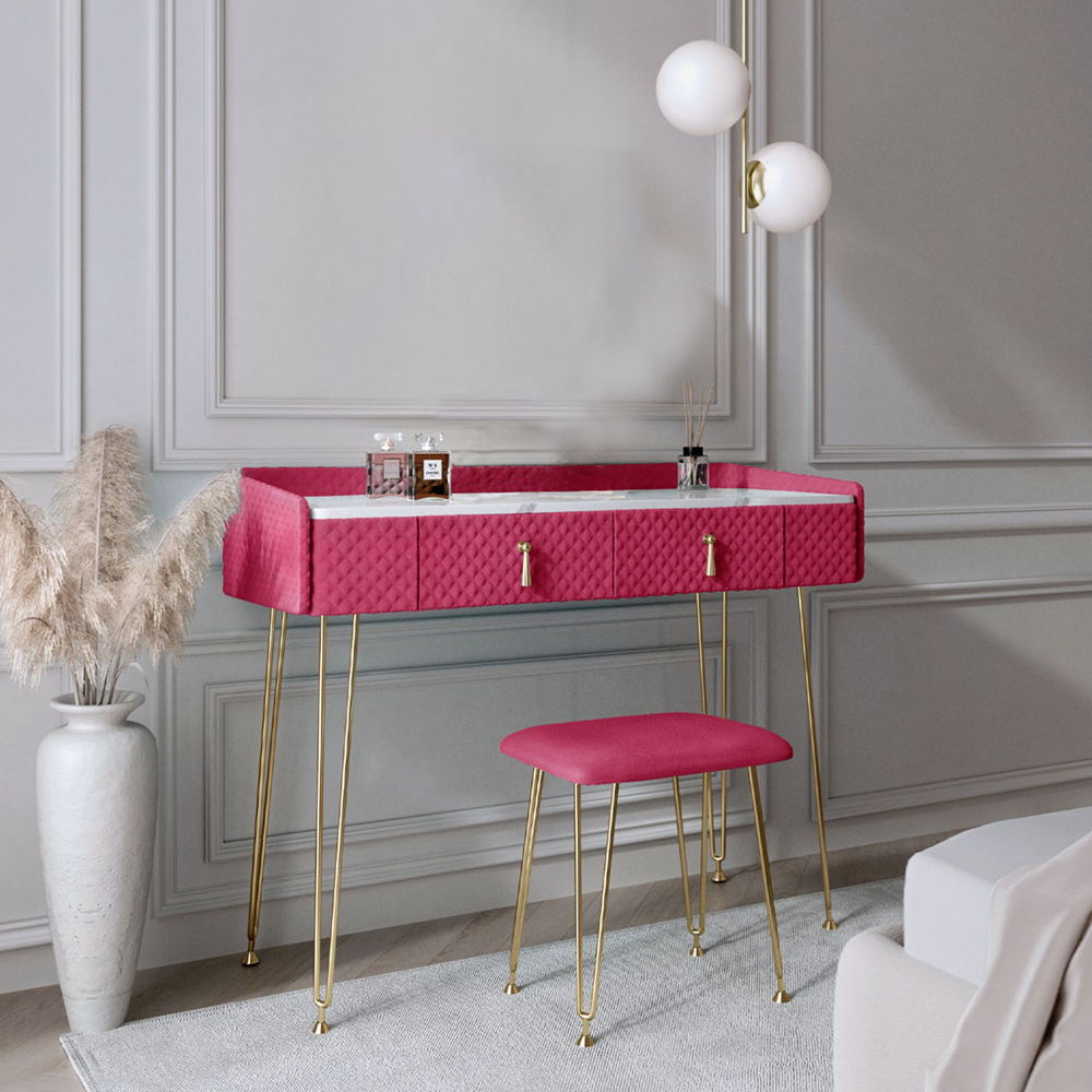 CARME Home Tokyo Glow Raspberry Velvet Dressing Table with Stool Set