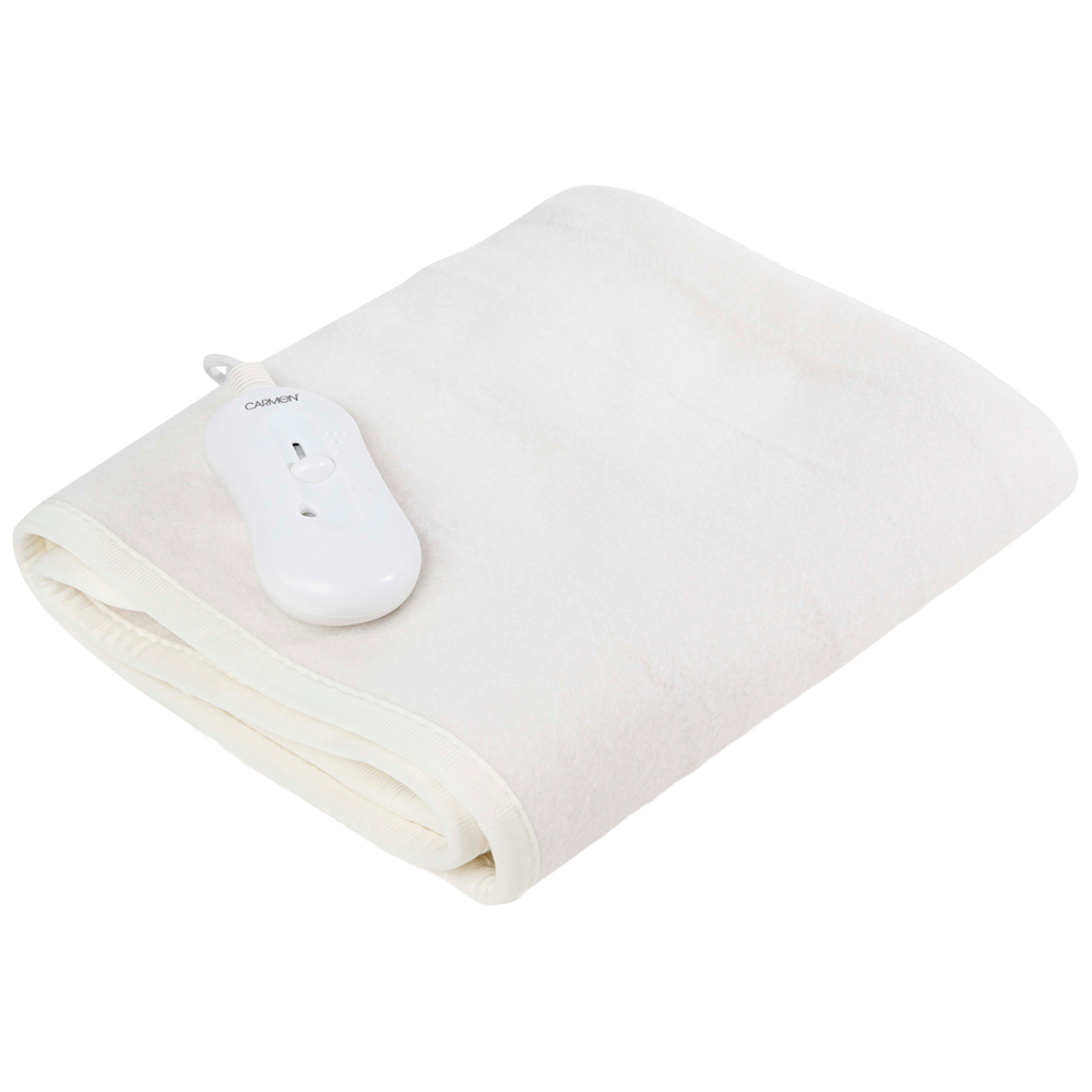 Enjoy extra warmth and cosiness all night long with the Carmen Double Heated Under Blanket made from 450gsm polyester soft-to-touch fabric. With a powerful 60W output and a choice of three different heat settings, the blanket heats up to your perfect temperature in no time for a comfortable night's sleep. The blanket is efficiently designed to allow consistent warmth as you sleep, costing just 14p per night to run. For a quick and easy clean, simply detach the temperature controller and pop the blanket into the washing machine. The blanket automatically switches off to avoid overheating and provides added safety so you can operate it safely during the day and night. It fits snugly on the bed, so you can wrap yourself up warm and stay cosy all night long.