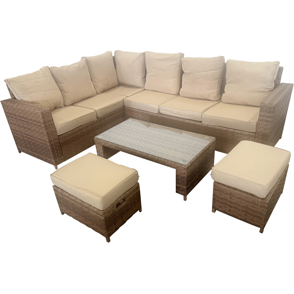Perfect for sitting back with your morning coffee, catching up with friends with a cocktail or simply enjoying the sunshine, this Carolina Rectangle Table Conversation Set is the ultimate solution for creating a stunning outdoor space that's excellent for relaxing or entertaining. Made with high-quality rattan and inviting cushions, this conversation set is ideal for creating a comfortable and welcoming environment. The stylish rattan design protects against UV rays, ensuring it will look its best for years to come and provide you with added peace of mind. This versatile patio furniture has a luxurious and sumptuous look, giving it a fantastic blend of comfort and elegance.