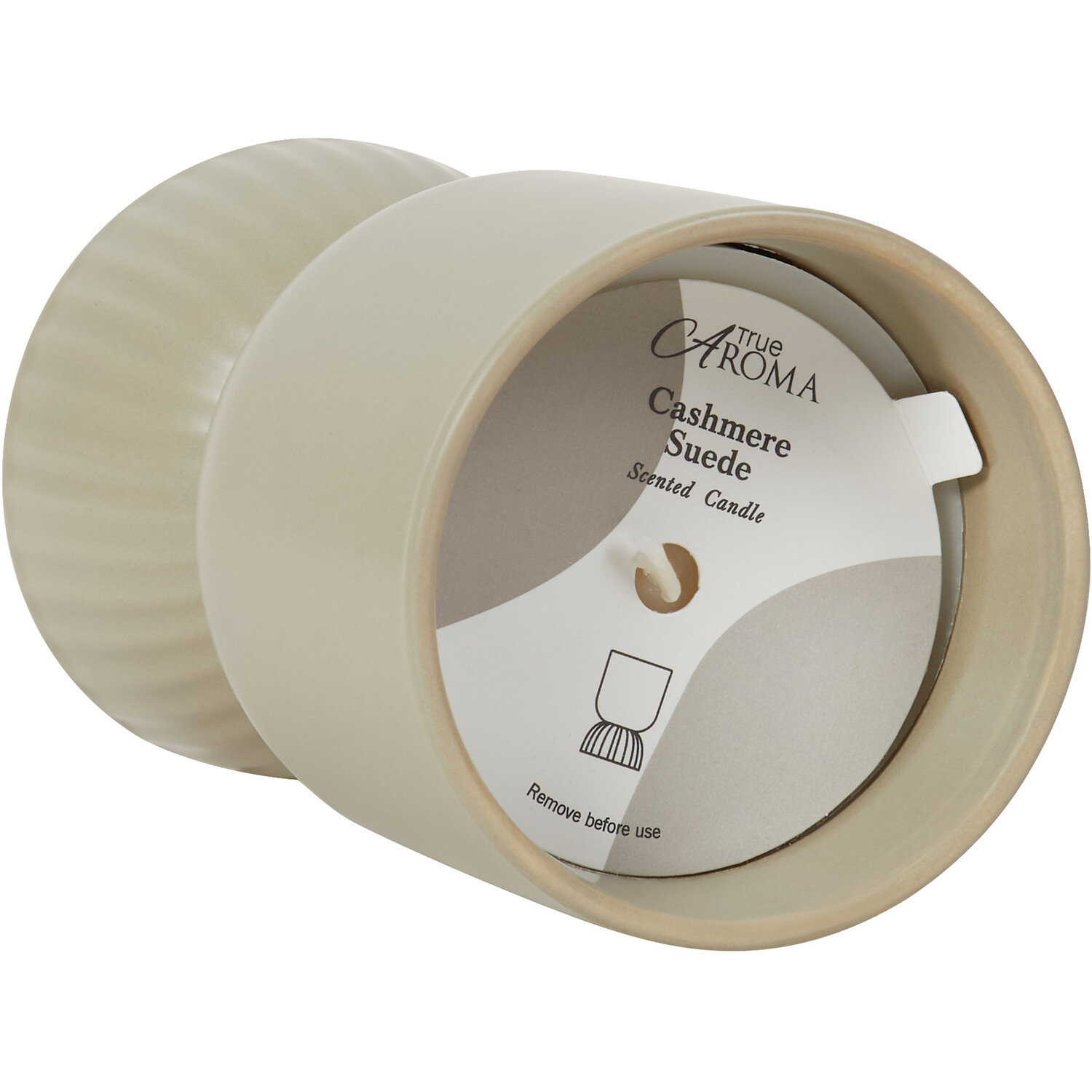 The Cashmere Suede Ceramic Candle is the perfect candle for your home, filling your space with a soft and spicy fragrance to make your space feel warm and inviting. The unique modern design of the jar will be a conversation piece within your home and will look beautiful sitting on accent tables, shelves, and mantelpieces for a modern touch.