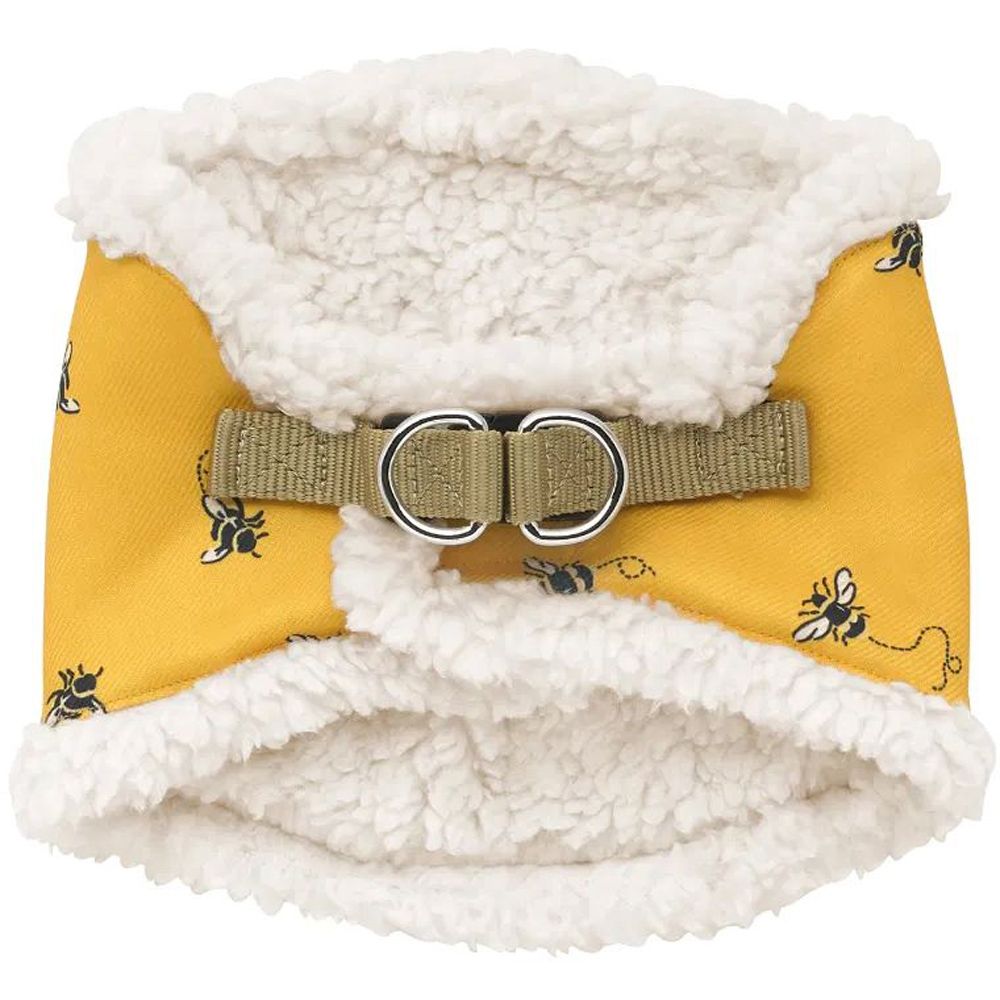 Harnesses are designed to reduce pressure on a pet's neck - perfect for training and pups who tend to pull on their leads. Ours has a soft plush lining for added comfort and an easy button and hook and loop fastener. In machine washable Bee print The harness comes in three sizes: L35-38cm.