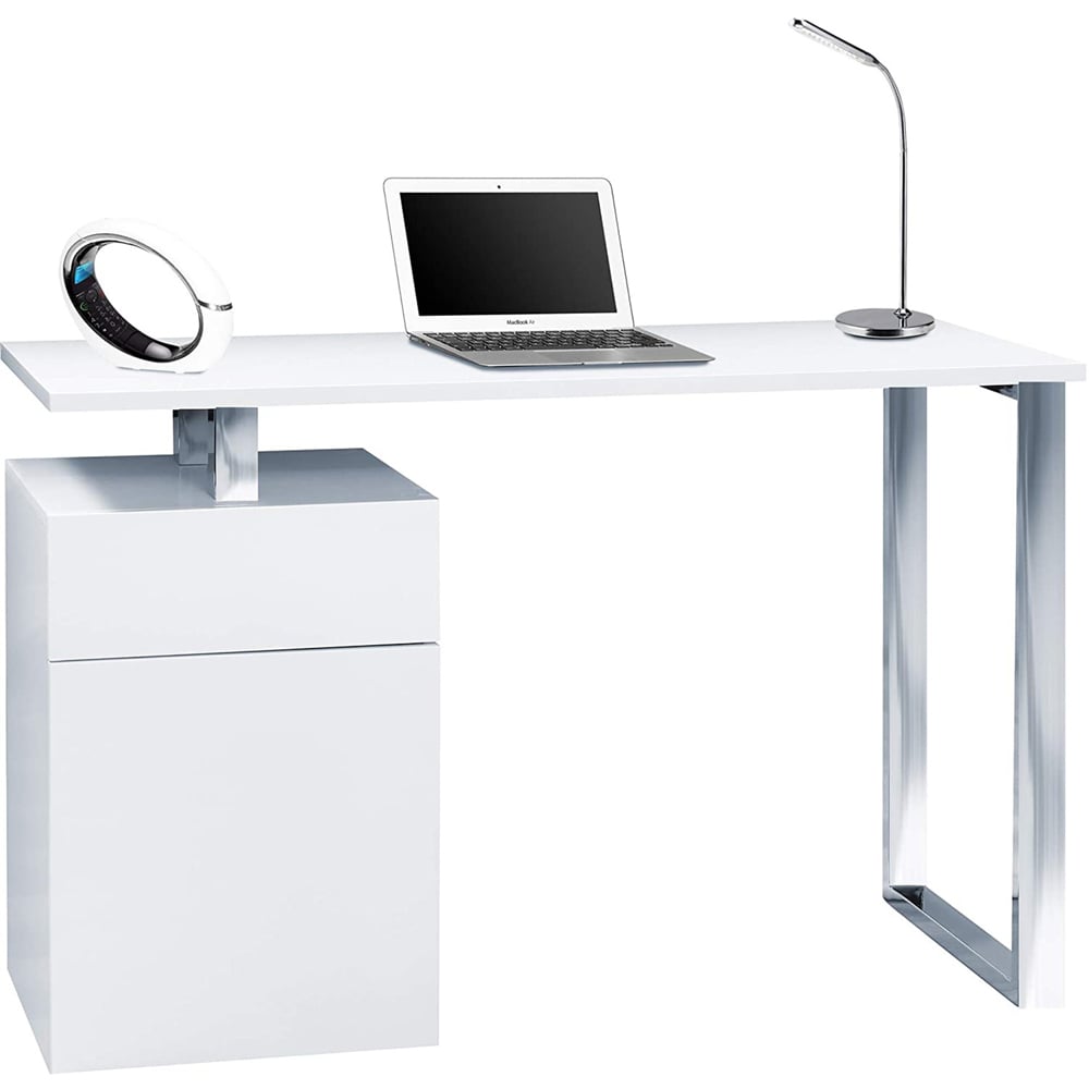 The luxurious Calista multi-purpose computer desk is designed for any home or office. It is suitable for daily use due to the generous work surface. For all your storage needs, the Calista home office desk features one smooth easy-glide pullout drawer and a 2-shelf cabinet with contemporary flush fronts. The sturdy frame and solid build ensure exceptional stability for your equipment. With stylish U-frame steel legs, this eco-friendly and stylish desk is made with responsibly sourced materials, its solid build is designed without compromise and finished with parallel edges. The Calista ergonomic desk is flat packed and it is delivered complete with a clear and concise manual for easy self-assembly. The desk is very easy to clean and the colour does not fade out. Dimensions: Width: 120cm x Depth: 50cm x Height: 77cm.