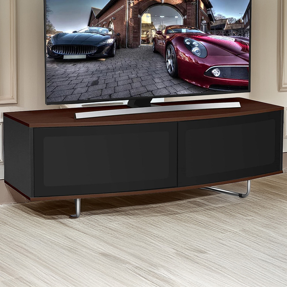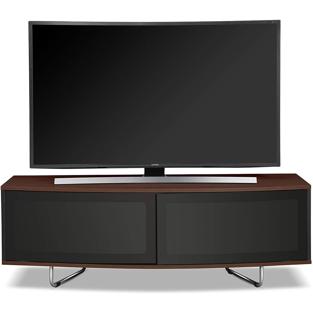 The new contemporary "D" Shaped Caru TV cabinet is ideal for LED, LCD and OLED TV screens. Suitable for 32"-65" flat-screen TVs, the Caru TV stand has ample space for storing home cinema systems, Blu-Ray players, Sky/Virgin/BT receivers, digital boxes and game consoles. Combining safety with style, the Caru cabinet has toughened safety glass shelves and Beam-thru remote-friendly doors, allowing you to use your remote control through the closed doors. The Caru TV cabinet also features cable management to hide unsightly wires at the rear and a clear and concise manual for easy self-assembly. Dimensions: Width: 120cm x Depth: 39-50cm x Height: 43cm.