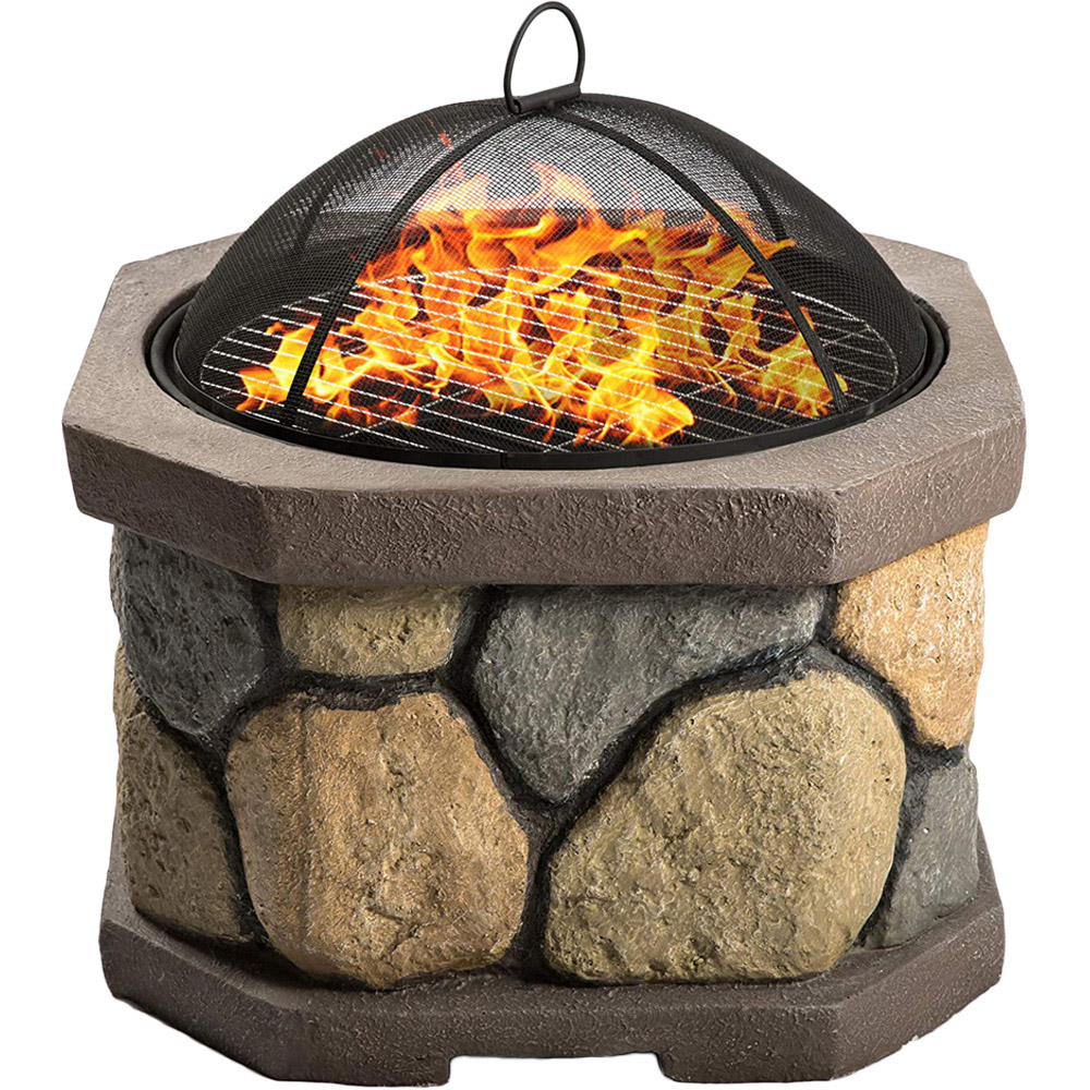 A bold design with an octagonal frame, the Bogota fire pit is practical, and convenient, and can be used with charcoal, logs, coal and wood. Beautifully completed with real stone effect tiles, it is perfect for providing warmth in a garden, yard, patio, terrace, or similar areas. The Bogota is a clever multi-function Fire Pit - it can be used as a Fire Pit, a Barbeque or an Ice Bucket. The safety mesh lid allows you to watch the burning fire, encloses the fire for safety and prevents sparks and debris from flying out. The poker tool can be used for both removing the mesh cover and rearranging the logs or coal. For your convenience, the following accessories are included with the Bogota outdoor fire pit: poker tool, barbeque grill, safety mesh lid, charcoal rack, clear and concise instructions for easy self-assembly, waterproof protective cover to protect it from dust, leaves and rain. The Bogota garden fire pit has a River Rock brick-influenced design and is made of Eco-Stone composite fibre. Additionally, it is durable and rust resistant with a heat-proof frame and steel bowl, with a black powder-coated finish. Dimensions: Diameter: 54cm x Height: 49cm.