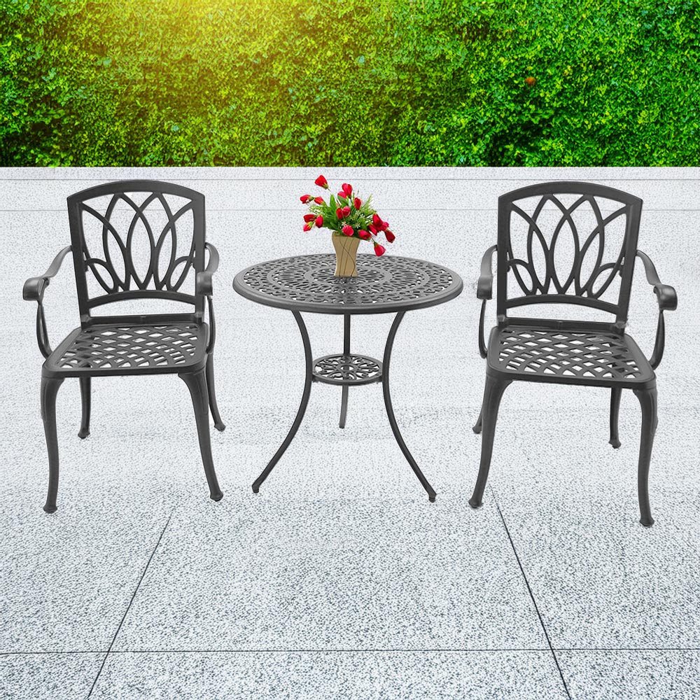 With its luxurious design, the Positano bistro set is practical, convenient and perfect for any garden, patio, terrace, decking, balcony, lawn, yard or similar areas, and adds a touch of class wherever it sits. The Positano is a 3-piece bistro set featuring 2-high backed large chairs with armrests and a matching table. It promotes a highly decorative Italian-influenced design, with patterned chairs, detailed table top, and stylish legs. The table comes complete with a central hole for the placement of an umbrella or parasol with a diameter of 4.0cm. Made from no-rust cast aluminium, the Positano outdoor bistro set is strong yet lighter and easier to move than the traditional cast iron predecessor. It is low maintenance and easy to keep clean, it has been powder coated for durability and comes complete with rubber pads for steadiness. With durability in mind, the hardwearing Positano garden bistro set is designed to be left outside all year and be resistant to most types of extreme weather. Its long life span means it will not need replacing every few years like wood, plastic and other materials, and will not rot or rust. The Positano metal bistro set comes flat-packed, with simple and easy-to-follow home assembly instructions. Each Chair measures as follows: Width: 52cm x Depth: 51cm x Height: 92cm / Weight capacity: 130kg. The Table measures as follows: Diameter: 69cm x Height: 70.0cm / Parasol Diameter: 4.0cm / Weight Capacity: 50kg. The Positano chair and table set comes complete with a 1-Year Manufacturers Warranty Included.