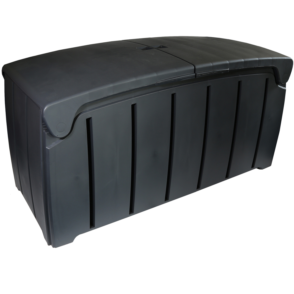This wonderful garden store features a unique, winged, ribbed lid and stylish charcoal grey colour. It's great for organising your garden items if you can't access a garage/shed, or simply use as additional storage if you want more space. Keep cushions and blankets dry when not in use or safely store garden tools and accessories. Robust and waterproof design suitable for outdoor use
