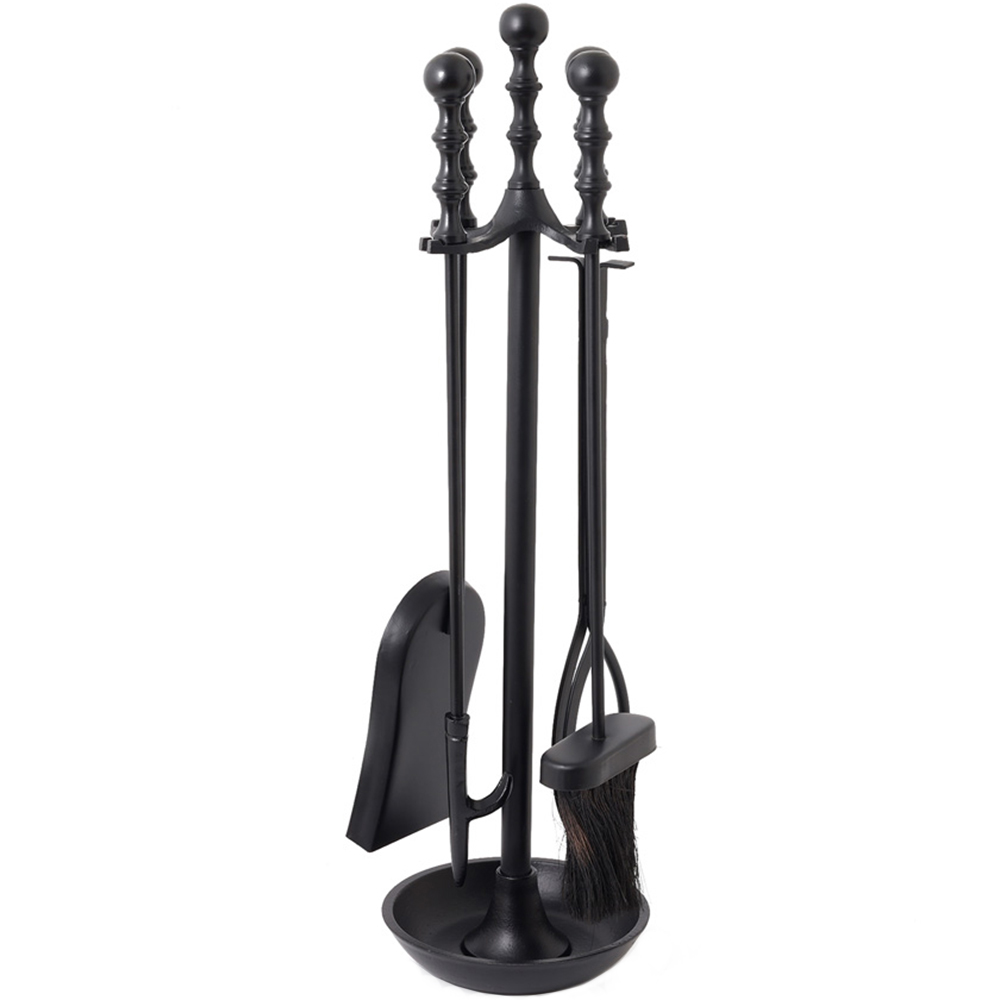 Make a sophisticated addition to your fireside with the Charles Bentley Hemlock Black Fireside Companion Set. The iron stand has a holder for each individual tool, all of which have aluminium handles, with a brush made from natural coco fibres. Also, the handles are ergonomic meaning they are comfortable and effective. This companion set also has a dust catcher base tray, making for a tidier fireside. Traditionally designed, the companion set is the perfect fireside accessory for your living room. Includes 1 x Coal Shovel, 1 x Tongs, 1 x Brush, 1 x Poker and 1 x Tool Stand. Ideal for indoor use only. Model no.: HMFIRESIDE49. Size: 60 x 16cm.