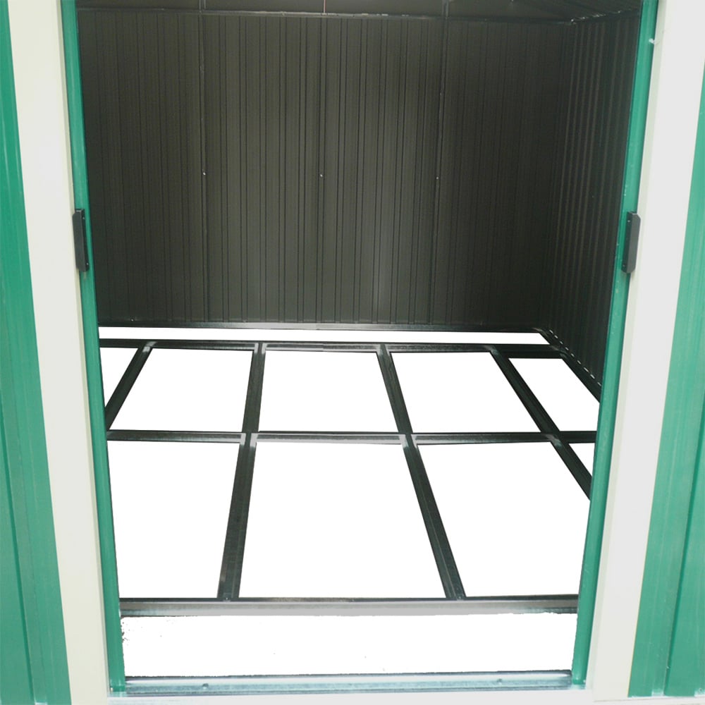 The perfect storage solution for any garden, this highly resilient 8ft x 10ft metal garden shed is great for storing a wide range of garden items. Ideal for storing everything from cycles and DIY power tools to furniture, this shed will protect your valuables from the elements. Crafted from robust galvanised steel, this large metal shed is rodent, fire, rust and weatherproof and comes complete with a floor foundation. It's designed with two sliding doors (holes on handles for a padlock, please note padlock is not supplied), four air vents and an apex roof. A must-have item for any outdoor living space, this practical metal garden shed will last for years to come. Please Note: This shed must be installed on a level wooden platform or level concrete foundation. Foundation kit supplied - this will enable you to lay flooring of your choice (we recommend wooden boards ) to give you a solid and secure floor. Base not included. Assembly is required.