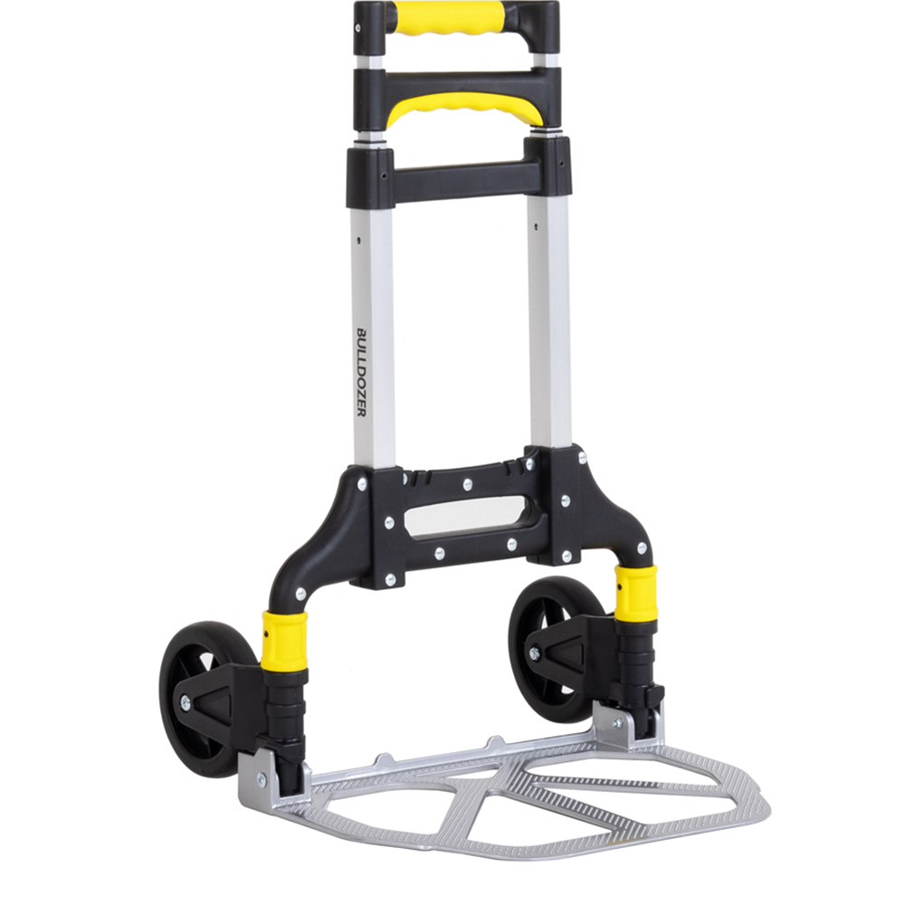 Charles Bentley's range of robust and reliable BULLDOZER products. From log splitters generating 12 tons of force, to a sturdy garden broom, BULLDOZER is your answer to convenience and credibility. The Foldable Hand Trolley by BULLDOZER, designed for moving multiple boxes and heavier loads with ease. Crafted from durable aluminium, this trolley is built for strength and support. Its height-adjustable design accommodates items stacked up to 1 metre in height. The foldable plate ensures easy storage, while ergonomic handles provide comfort during use. This trolley is a must-have for both domestic and professional environments.