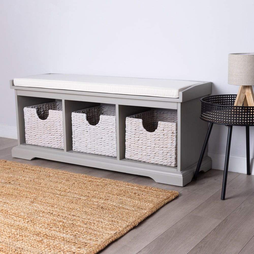 Charles Bentley Charnwood Grey Hallway Bench with 3 Storage Baskets