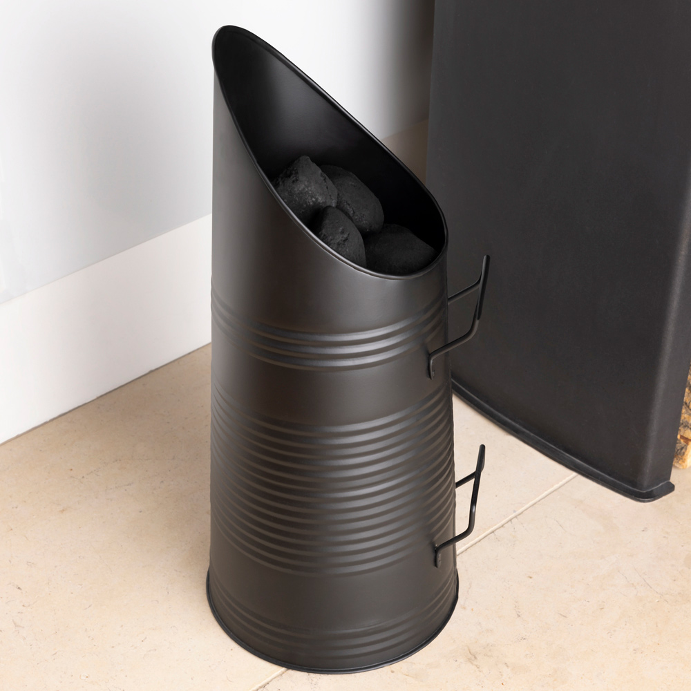 Charles Bentley Cherry Ribbed Coal Hod's tall and elegant design can hold up to 3kg of coal, making it ideal for coal storage, and its fluted top allows easy access for replenishing your fire. With its ribbed design, black matte finish and two metal handles, this traditional coal hod will provide style and practicality to any living room.