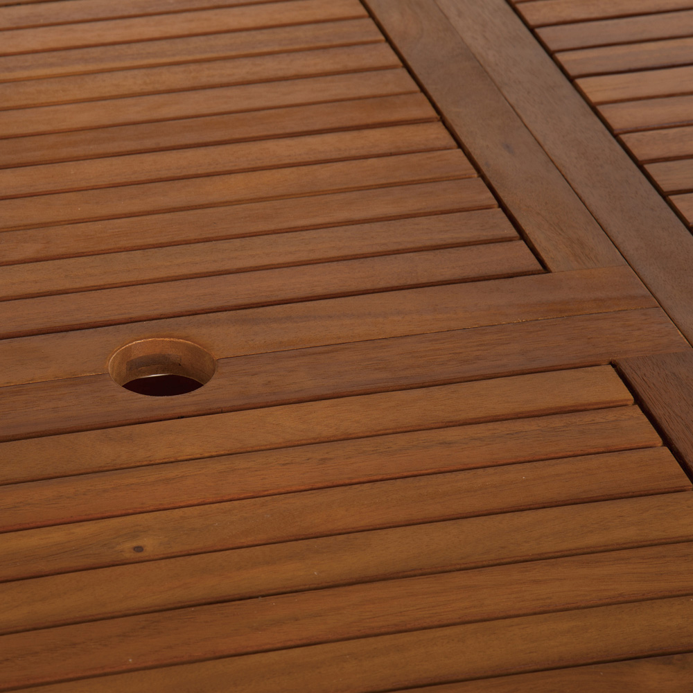 This attractive wooden oval table is ideal for dining and entertaining outdoors during the summer. This item is perfect for the garden and patio area and is made from hardwood which is durable and is designed to provide a marvellous dining experience. This table comes in a oval shape, has a parasol hole and has a extendable feature allowing it to change to a smaller or larger size. It is recommended that the table is covered during the winter months. Matching chairs are available. Protect your garden furniture with our durable and waterproof covers. Explore our wide range of heavy-duty Garden Furniture covers to find the perfect fit for your needs.