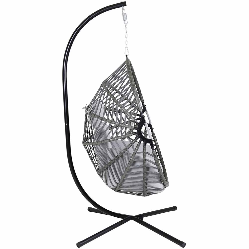 Relax in style with this egg-shaped hanging swing chair by Charles Bentley. Designed in a striking dark grey rope and rattan pattern with luxurious cushioned seating, the outdoor swing chair is sure to be a focal point of your outdoor space. With features like an adjustable headrest for optimum comfort, foldable basket for compact storage with removable and hand-washable cushion covers it promises you convenience and practicality. It also includes a safety belt to ensure a safe and secure environment at all times. The hanging egg chair is great to create a comfortable space to unwind in your back yard or garden. Dimensions: Overall- H203 x D126 x W126cm, pole height- H203cm, base- W126 x D126cm, pole diameter- 4.2 x 2.2cm, basket- H117 x D61cm x W88cm, head cushion- H23 x DTBC x W41cm, seat cushion- H10 x W115 x D105cm, chain- L15 x W2.8cm, spring hook- L14 x 4cm. Protect your garden furniture with our durable and waterproof covers. Explore our wide range of heavy-duty Garden Furniture covers to find the perfect fit for your needs.