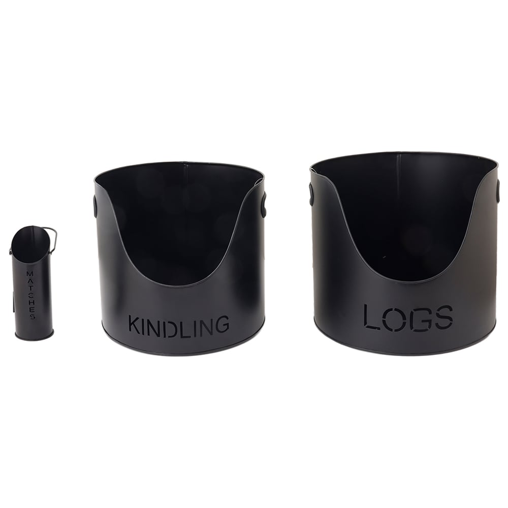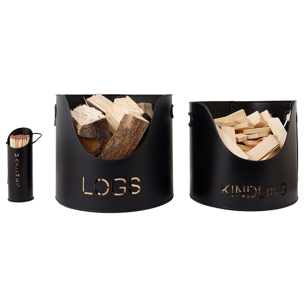 This handy trio of stylish fireside accessories by Charles Bentley are essential for those who take staying warm seriously. With one large wood bucket holding 4kg, one small kindling bucket holding up to 2.5kg and a matchstick holder holding up to 100g, all your fire building needs can be met. And with carry handles on the log holders, a Log and Kindlings' cutout logo design and a black matte finish, your fireside and living room will look stylish as well as feel warm.