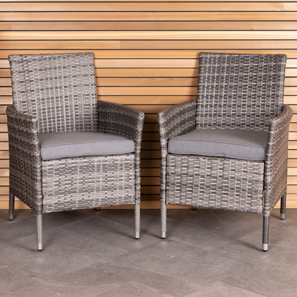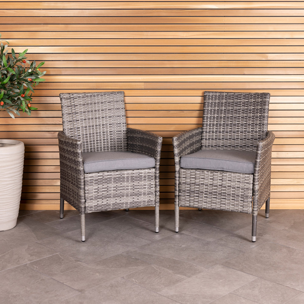 Perfect for providing additional seating at family gatherings, this pair of rattan dining chairs is ideal for dining alfresco on warm summer days. Crafted with an aluminium frame and weatherproof, variegated rattan, these rattan chairs are designed to withstand harsh elements. The chairs are completed with thick seat cushions, for added comfort and available in a choice of either natural or grey. These contemporary rattan dining chairs are ideal for both indoor and outdoor use and will add a stylish touch to any garden, patio or conservatory. Protect your garden furniture with our durable and waterproof covers. Explore our wide range of heavy-duty Garden Furniture covers to find the perfect fit for your needs.