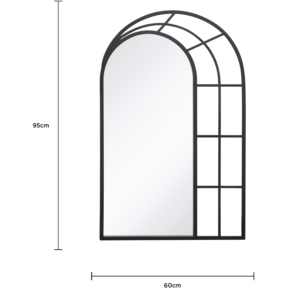 Discover a new dimension of style with the Charles Bentley Paris Black Arch Window Outdoor Wall Mirror 95 x 60cm. It is the perfect choice for anyone seeking a standout, yet subtle, addition to their garden. Its water-resistant and shatterproof finish ensures long-lasting durability while adding charm and personality to your outdoor space. The elegant arch design with lattice detail enhances any garden, creating a stylish focal point. Built to last, this mirror, featuring 4mm glass, is a durable choice for outdoor use, though it’s best to move it indoors during winter or bad weather. The sturdy iron frame with a matte black finish adds to its lasting appeal, and the keyhole hanger makes mounting easy. Please note that wall plugs and screws are not included.