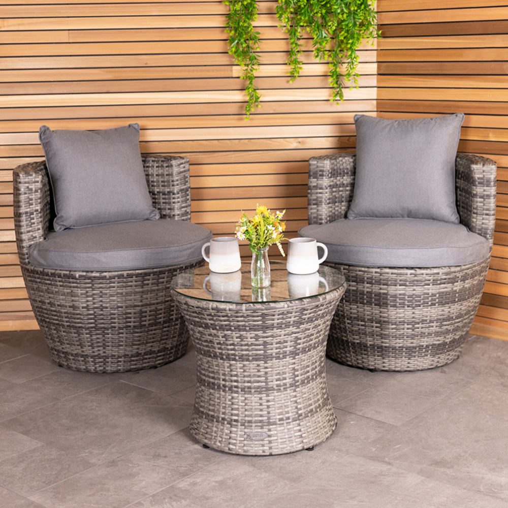 Charles Bentley Rattan Effect 2 Seater Stacking Bistro Set Grey