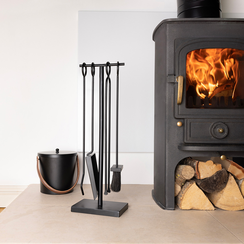 Charles Bentley Redwood Fireside Companion Set is an iron four-piece companion set comprising poker, tongs, coal shovel and brush. The brush is made from natural coco fibres and has hooped handles. The tools are held in a straight-line tool stand with a rectangular base. With its traditional design and classic black matte finish, this attractive companion set will look good next to any fireside.