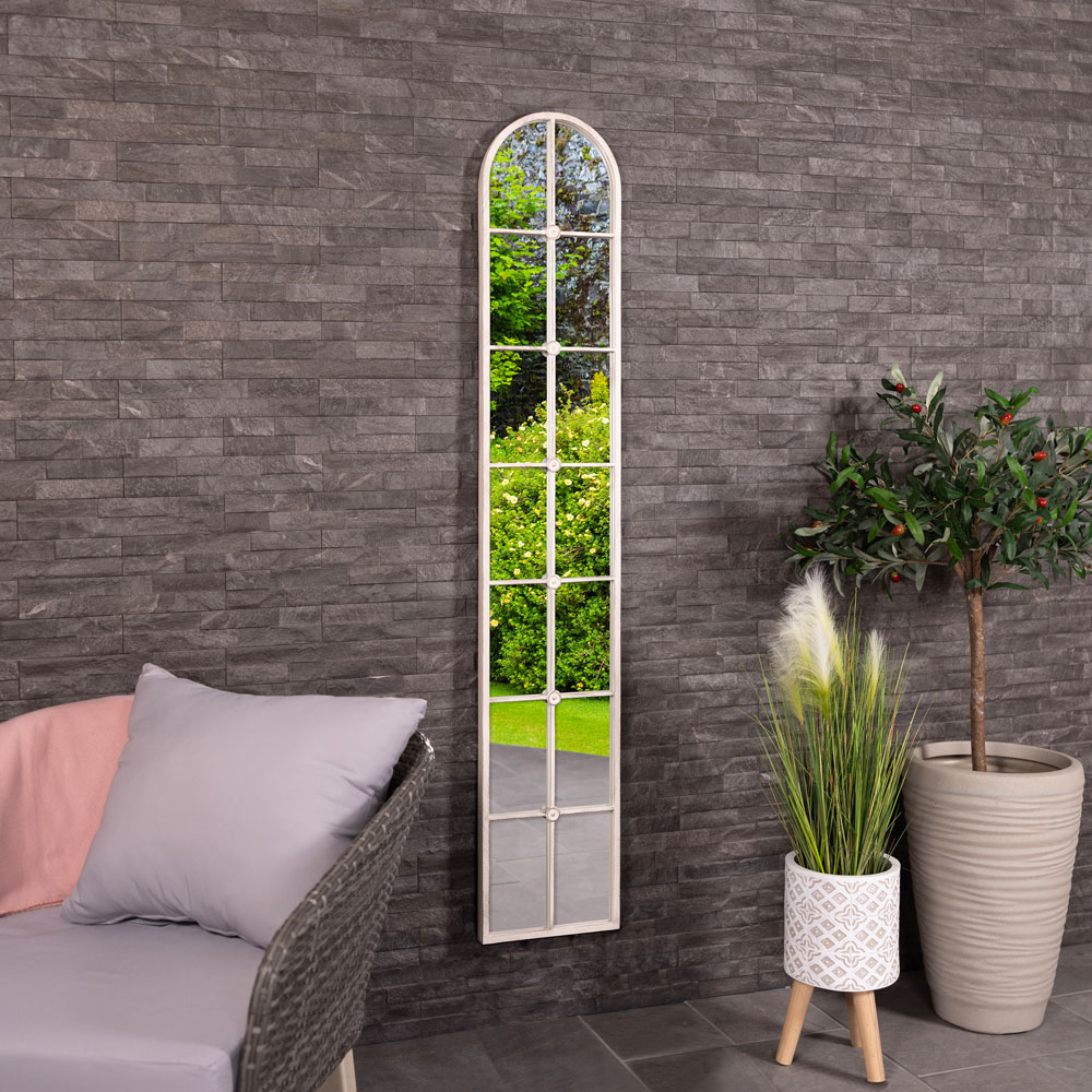 Bring charm to your space with the Charles Bentley San Marino Antique White Arched Wall Mirror. Designed to reflect hidden areas in your outdoor oasis, it enhances your space effortlessly. Featuring a water-resistant and shatterproof finish, this mirror is perfect for indoor or outdoor use.