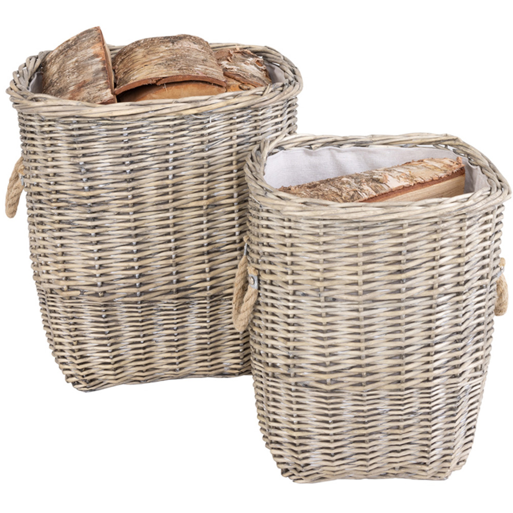 Organise your home the aesthetic way with the Charles Bentley Snug Wicker Log Basket with Fabric Liner Set of 2. Handwoven from sturdy willow wicker, these beautifully crafted baskets do more than just holding logs, they also uplift your home storage with an aesthetic touch. With their soft oval shape, they are the perfect of cosiness and practicality. Each basket comes with charming rope handles, making it easy to carry. Plus, the interior of each basket features liner which is made of 70% polyester and 30% cotton, giving them a soft, high-end feel while keeping your items safe from snags and scratches. Whether you are tidying up toys, blankets, or storing everyday essentials, these baskets get the job done while looking good. When not in use, just stack one inside the other to save on space. Ideal for indoor use and designed to hold up to ten kilograms, they are as functional as they are beautiful. It is recommended to keep these dry as these are made of natural material.
