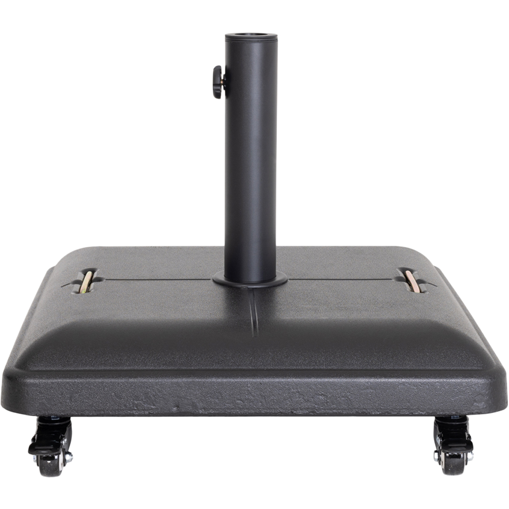 Suitable for parasols with a 38mm pole, this square parasol base will keep your parasol secure in windy conditions. Featuring a simple black design, this parasol base will complement a wide range of furniture sets and umbrellas. Constructed with a sturdy cement base, this base is finished with castor wheels, for easy manoeuvrability. Please Note: It's recommended you take the parasol down during windy conditions.