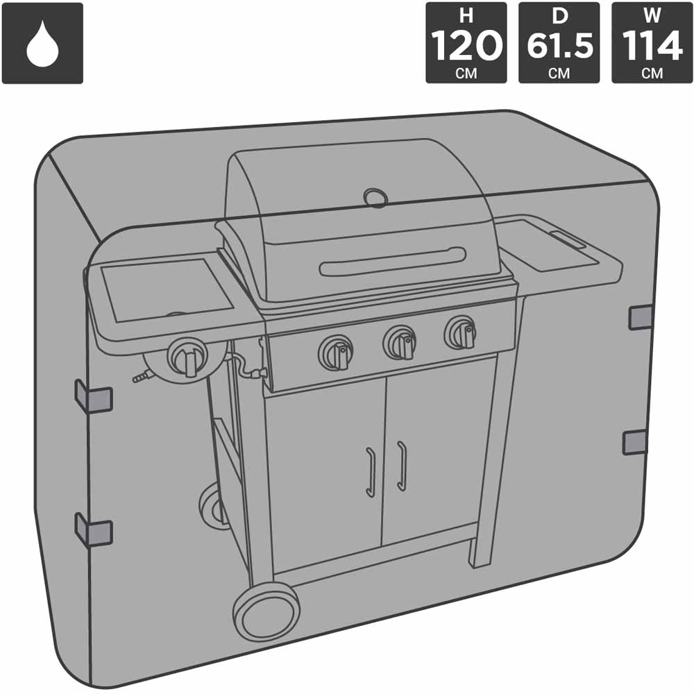 This black dome shaped BBQ cover is suitable for medium gas BBQs and will ensure protection from rain, dust and dirt as well as preventing rusting. It is heavy duty, durable and has an easy-wipe finish. It is ideal for covering your BBQ when not in use, overnight and out of season. Dimensions: H120 x W114 x D61.5 (cm)
