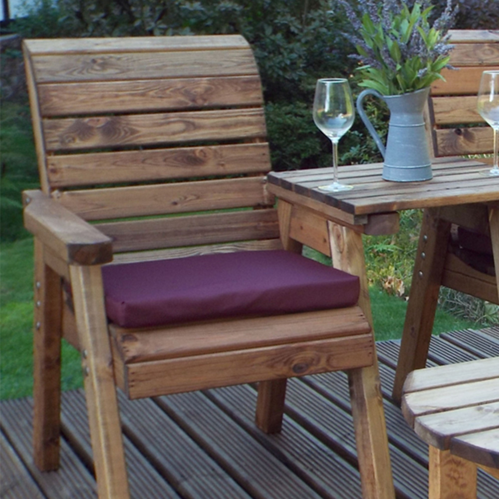 Create an outdoor retreat for relaxation and rejuvenation with the Charles Taylor 2 Seater Straight Companion Dining Set with Red Cushions. This set comes with two single chairs, one square detachable tray and a traditional coffee table. Hand-finished and made using sustainably sourced (FSC) wood, the wood has been treated with an oil-based water-repellent preservative and rustproof galvanised zinc bolting to ensure that the bolts are protected against corrosion and rusting. The set comes with a 10-year rot-free guarantee. Accessories shown in the image are for display purposes only. Protect your garden furniture with our durable and waterproof covers. Explore our wide range of heavy-duty Garden Furniture covers to find the perfect fit for your needs.