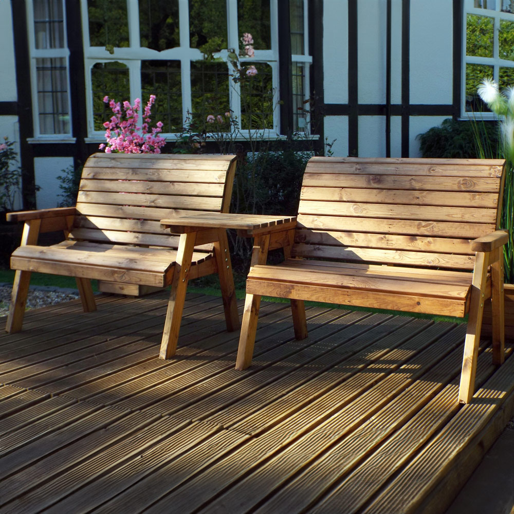 Make a comfortable addition to your garden with this Four Seater Straight Bench Set with Brown Cushions by Charles Taylor. This bench features a classic English design and is ergonomically designed for extra comfort. The set comes with two two-seater benches and a removable straight centre tray. It is made in Britain (UK), is hand-finished using sustainably sourced FSC wood, and comes with a 10-year rot-free guarantee. The wood has been treated with an oil-based, water-repellent preservative and rustproof galvanised zinc bolting, ensuring the bolts are protected against corrosion and rusting. The bench has a weight limit of 200kg, its internal arm width is 1020mm, and the seat height from the ground is 460mm. It also comes with a white glove delivery service, so you can relax while the skilled delivery technicians unpack, assemble your purchased product, and remove the packaging. Protect your garden furniture with our durable and waterproof covers. Explore our wide range of heavy-duty Garden Furniture covers to find the perfect fit for your needs.