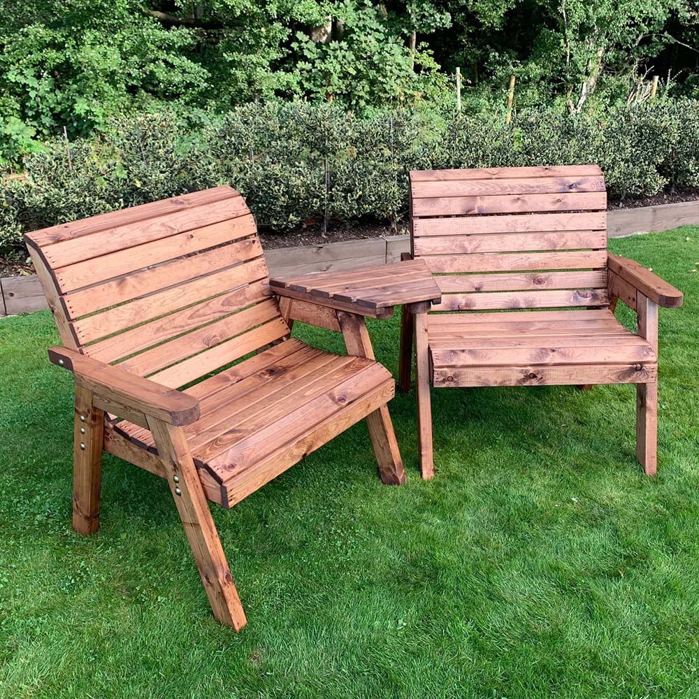 Experience the outdoors in style with the Charles Taylor Grand Twin Angled Companion Set. This set features angled removable centre tray. With its timeless English design, it complements any outdoor environment effortlessly. Made in Britain, this piece is meticulously hand-finished using wood from sustainable sources approved by the FSC. Coated with an oil-based water-repellent preservative, the chair is reinforced with rustproof galvanised zinc bolting to resist corrosion. Each chair can support up to 150kg and sits at a comfortable height of 460mm from the ground. Benefit from a white glove delivery service, where experienced technicians will set up your purchase and dispose of the packaging. Moreover, this item includes a 10-year rot-free guarantee for added peace of mind. Protect your garden furniture with our durable and waterproof covers. Explore our wide range of heavy-duty Garden Furniture covers to find the perfect fit for your needs.