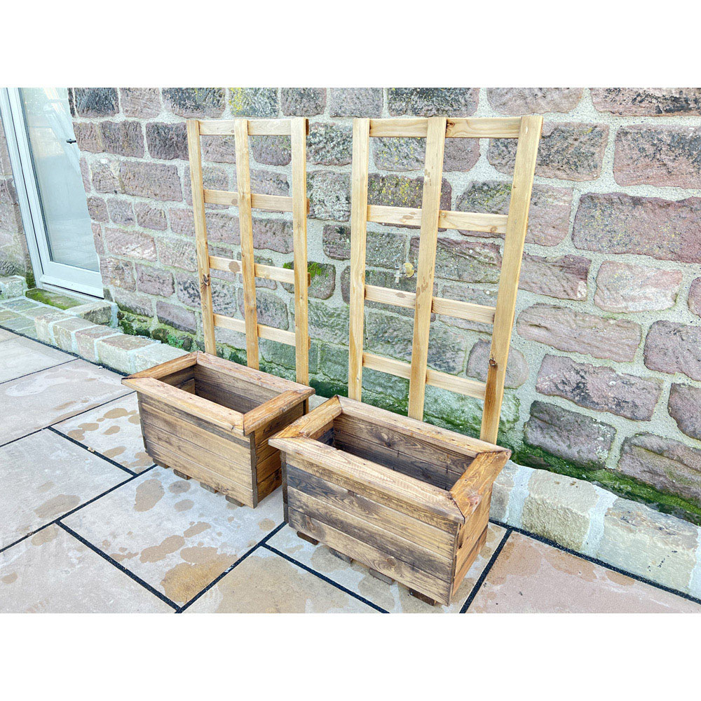 Transform your patio into a vibrant oasis with the Charles Taylor Small Kensington Trough. This trough has a traditional English design and would complement any outdoor space. The trough has drainage slats and can be lined if required. Hand-finished using sustainably sourced (FSC) wood, the wood has been treated with an oil-based water-repellent preservative and rustproof galvanised zinc bolting to ensure that the bolts are protected against corrosion and rusting. The approximate trough volume is 40 litres. Included is a 10-year rot-free guarantee. Accessories shown in the image are for display purposes only. Pack of two.