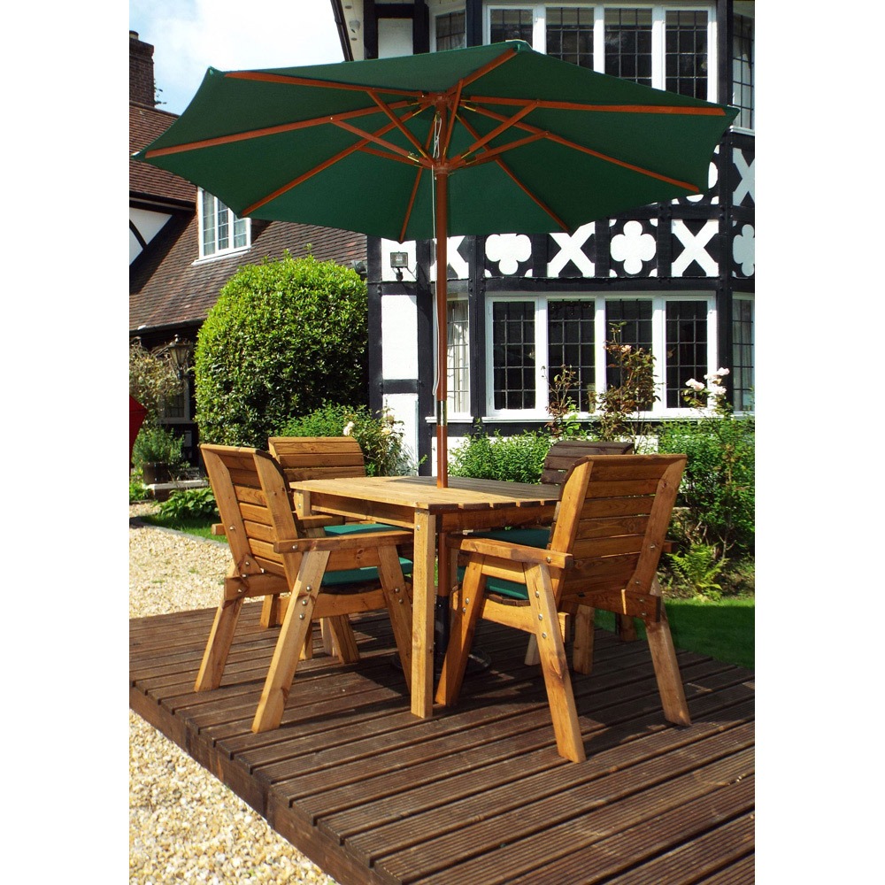 Charles Taylor Solid Wood 4 Seater Rectangle Outdoor Dining Set with Green Cushions