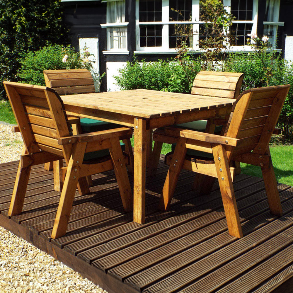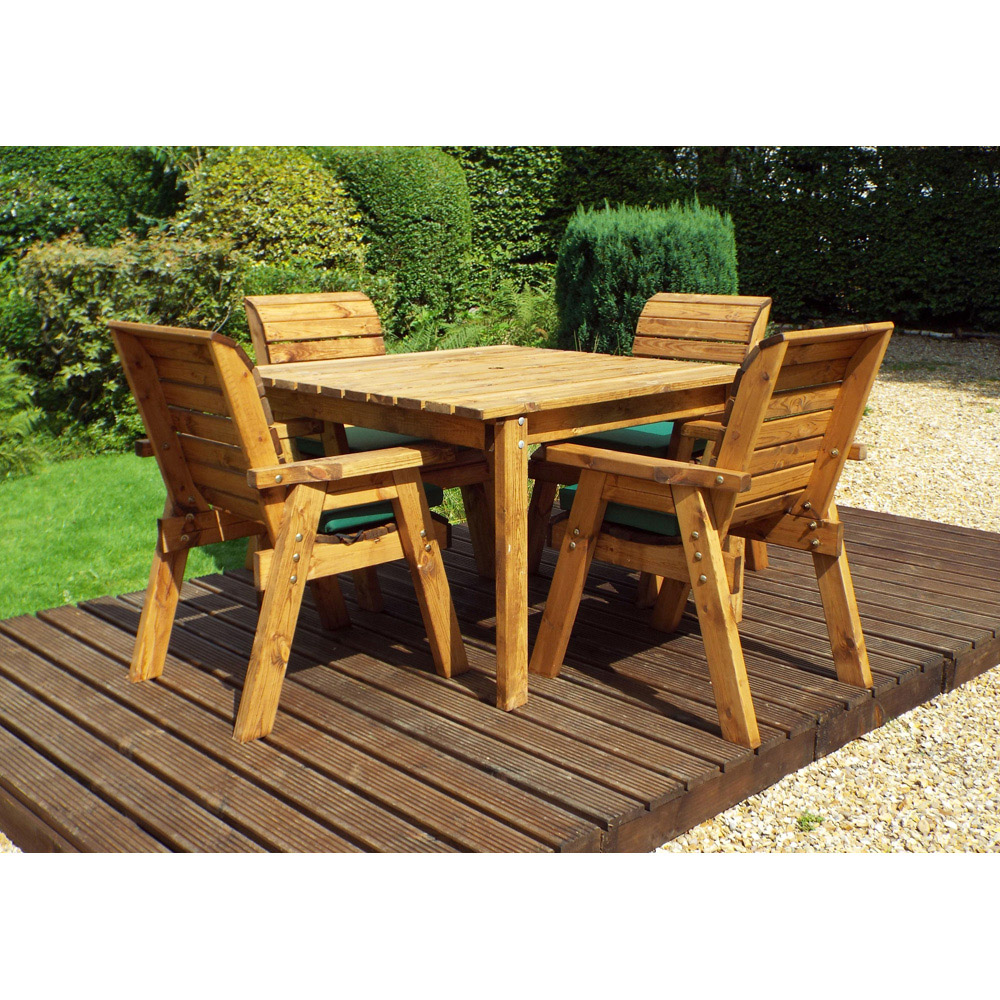 Charles Taylor Solid Wood 4 Seater Square Outdoor Dining Set with Green Cushions