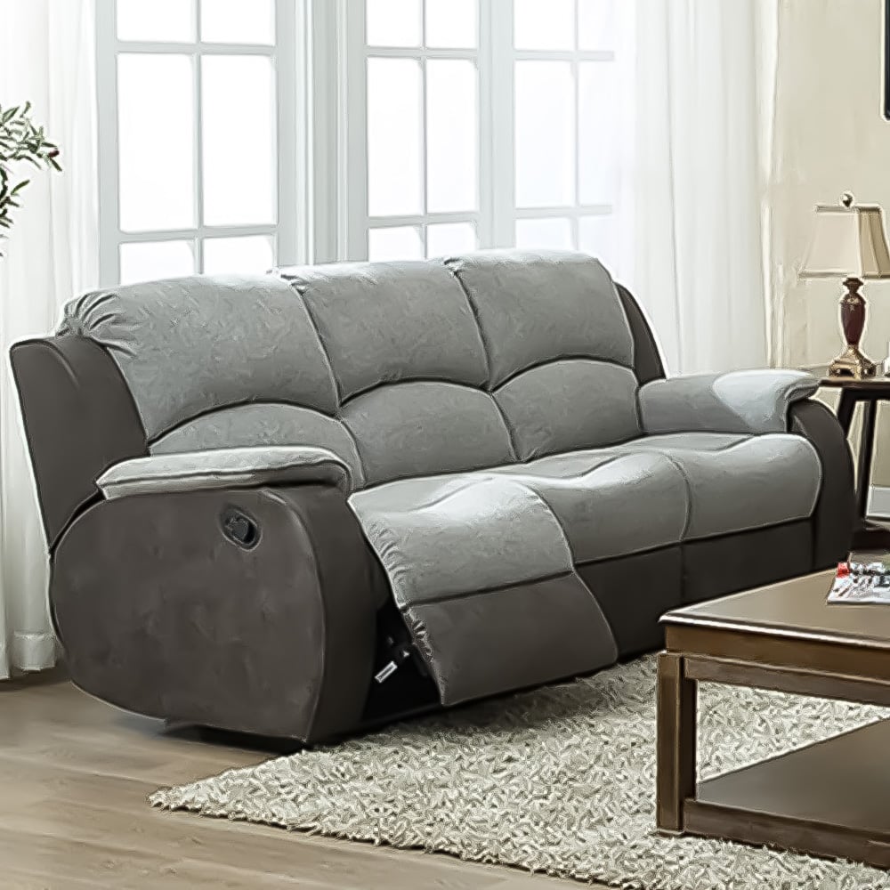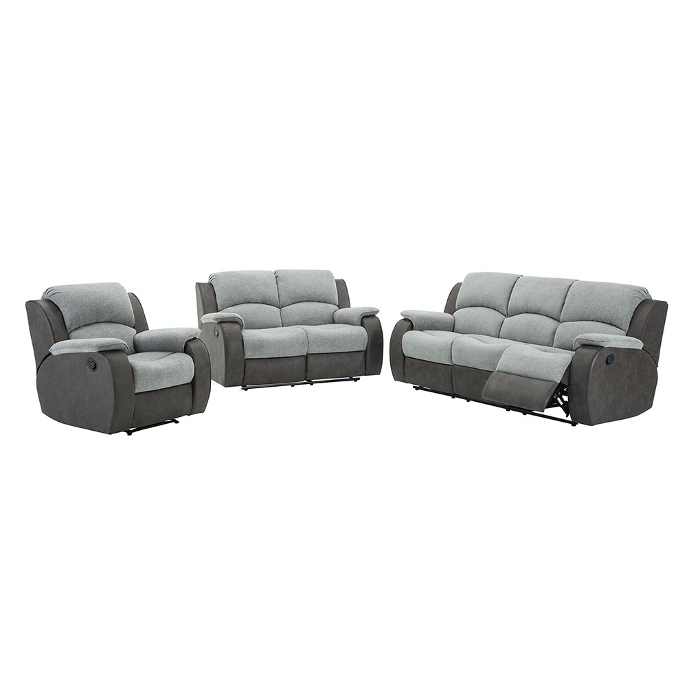 Relax in luxury with the Charleston 3 Seater Grey Recliner Sofa & Recliner Chair Set. Upholstered in smooth Pellissima leather with durable cable fabric accents, both the sofa and chair combine modern style with practical comfort. The sofa features foam-filled seats, padded armrests, and hand-released footrests on the outer seats, making it perfect for lounging and relaxation.