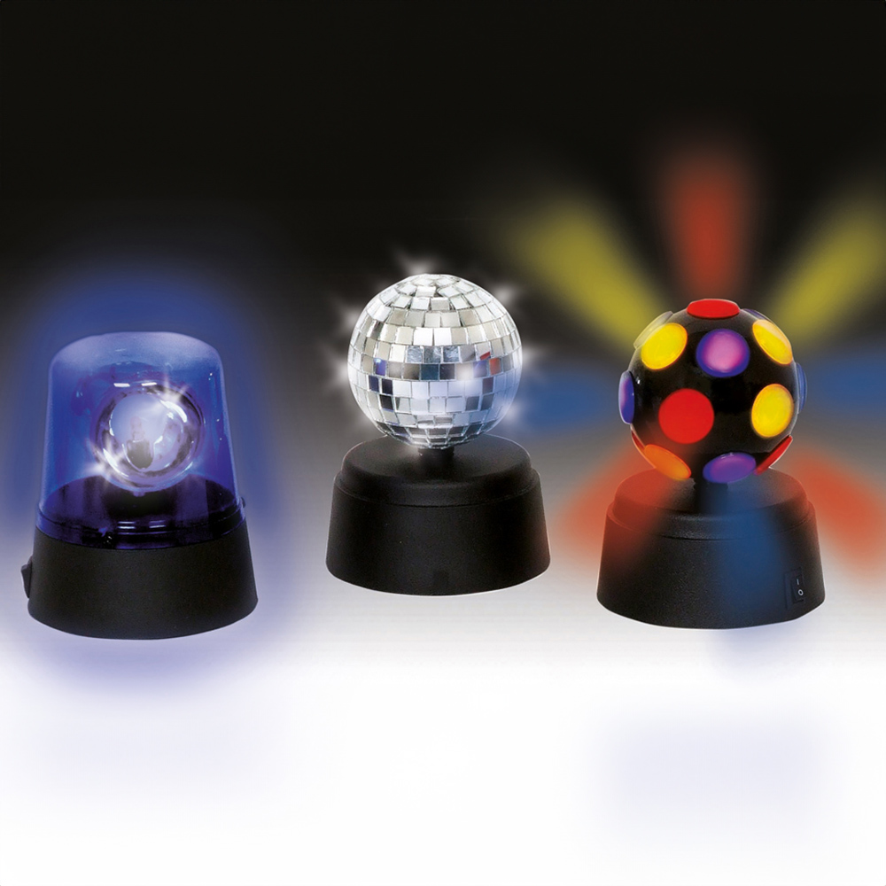 Give your home that extra sparkle with the Cheetah Funki Party Set. This battery-operated party set includes three fun items, such as a mini disco ball, a mini blue fuzz light and a mini mirror ball with a built-in rotator. All units need three AA batteries (not included). The fuzz light and disco ball feature long-life LEDs for bright lighting. The set comes in a colourful gift box, making it great for gifting purposes. This set is easy to use. Just add batteries and switch them on to enjoy the fun.