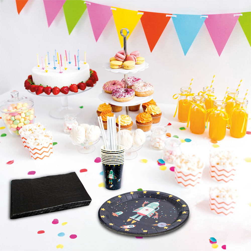 Upgrade your dining décor with the Cheetah Robot Party Tableware Set 40 Piece. This convenient 40-piece set is ideal for children's parties, picnics and family gatherings. This set includes 10 large plates (23cm diameter), 10 cups (9.5cm height), 10 napkins and 10 straws (19.5cm length) – all perfectly matching to create a coordinated look for your party. Designed for convenience, this tableware set makes cleanup a breeze. Simply dispose of or recycle the items after use, saving your time and effort. With an eye-catching robot design, you can add a futuristic touch to any occasion.