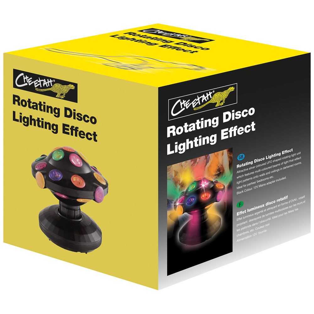 Get the party started with the Cheetah Rotatable Disco Ball 6 inch. This ball brings an exciting rotating disco light effect to any space. It features 43 coloured beams that move in constant rotation, creating a lively atmosphere. Designed with an attractive black housing, it comes with an AC/DC adaptor for safe use. This revolving disco ball is perfect for adding a fun disco vibe to any room or event.