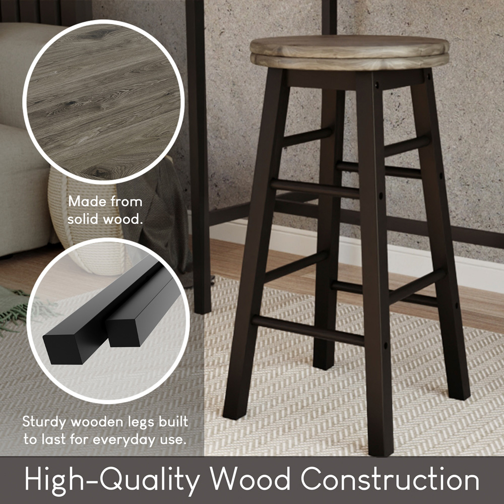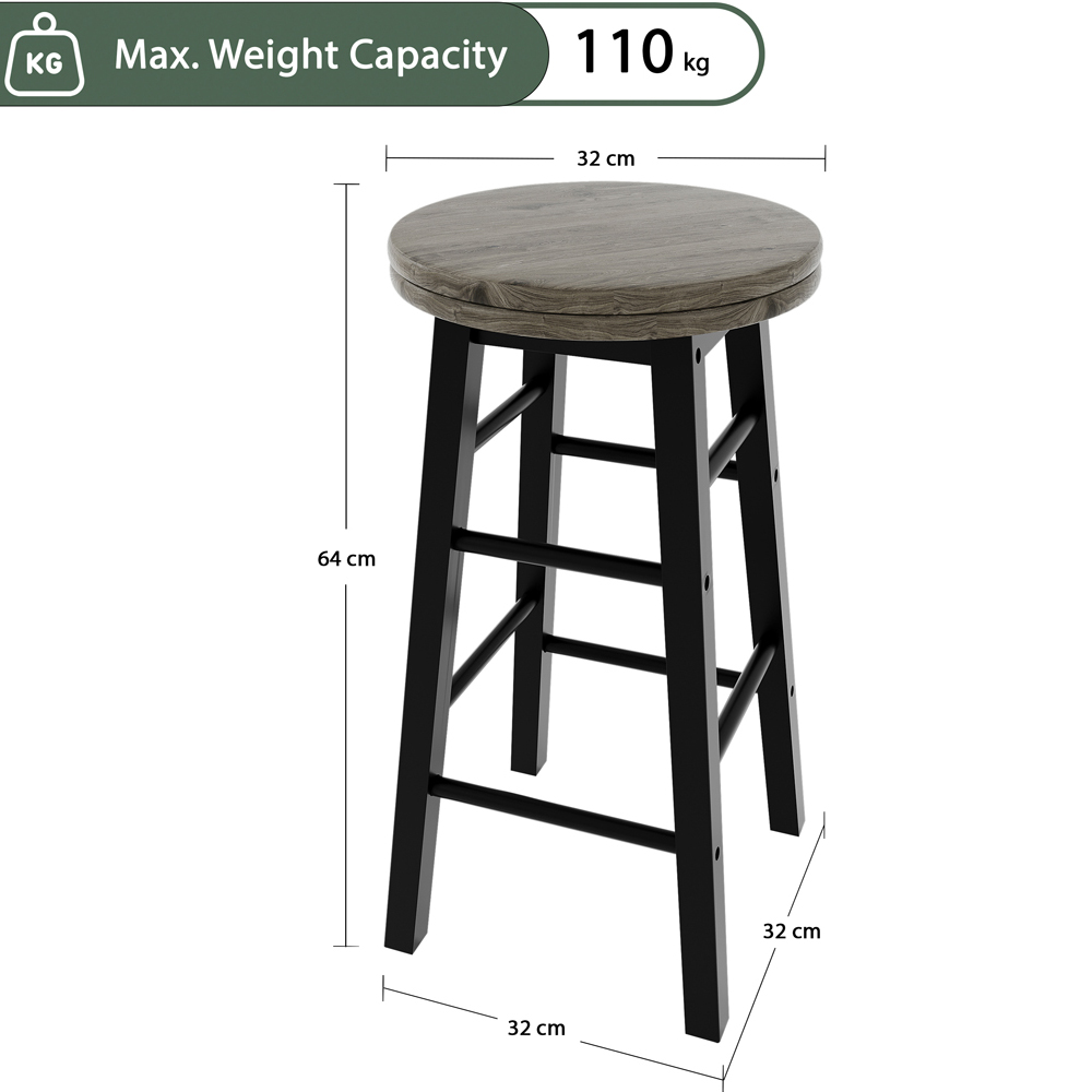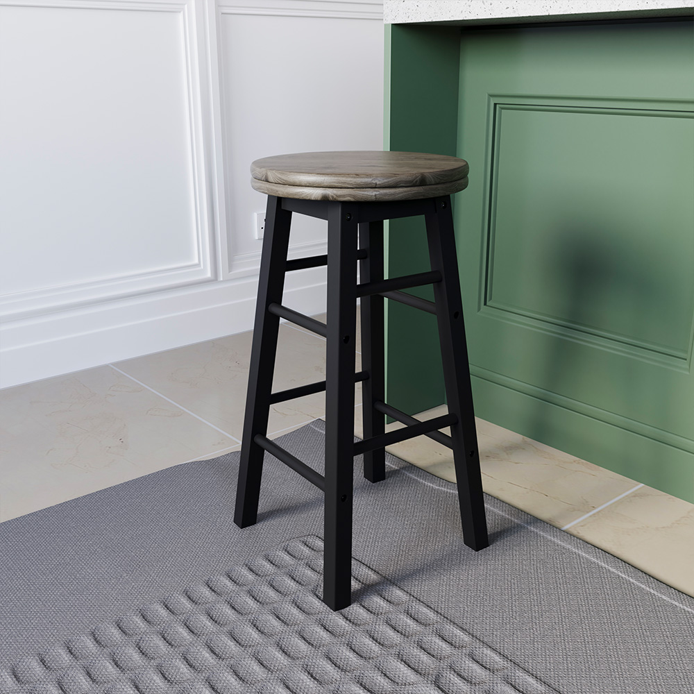 Elevate your kitchen or bar area with the Chef Vida Black Wooden Revolving Bar Stool, a perfect blend of functionality and style. Crafted from premium solid wood, this stool ensures durability and stability, while its 360-degree swivel seat offers unmatched convenience and flexibility. The natural finish and modern design seamlessly complement both contemporary and traditional decors, making it a versatile choice for any setting. Whether you're enjoying a casual breakfast or entertaining guests, this bar stool enhances your space with elegance and comfort.