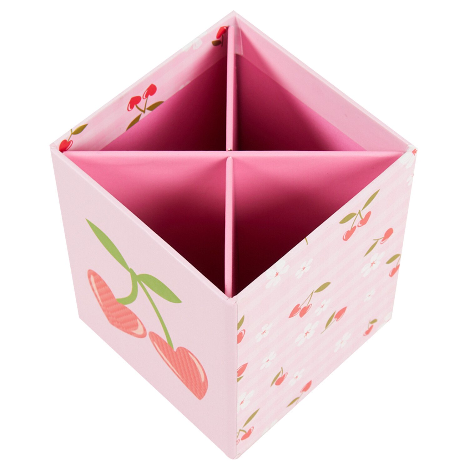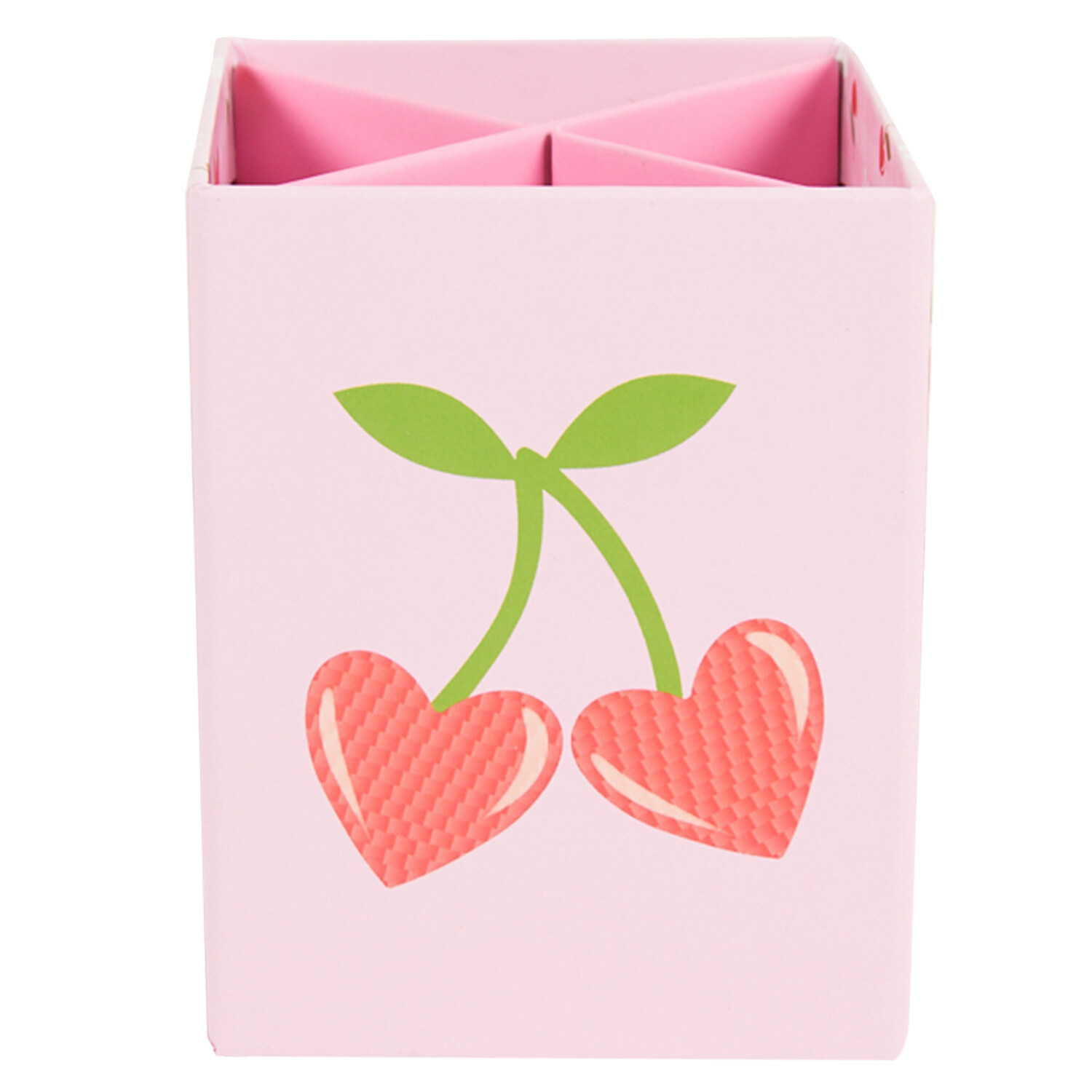 Keep your desk space clutter-free with this Cherry Hearts Pen Pot. Smartly crafted, it features four compartments and a fun cherry print design in pink making it both stylish and practical. Ideal for homes and offices, it's great for keeping your stationery organised.