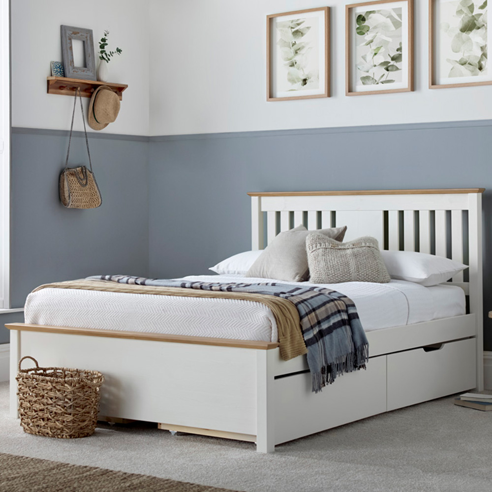 Chester Double Stone White and Oak 2 Drawer Storage Bed Frame