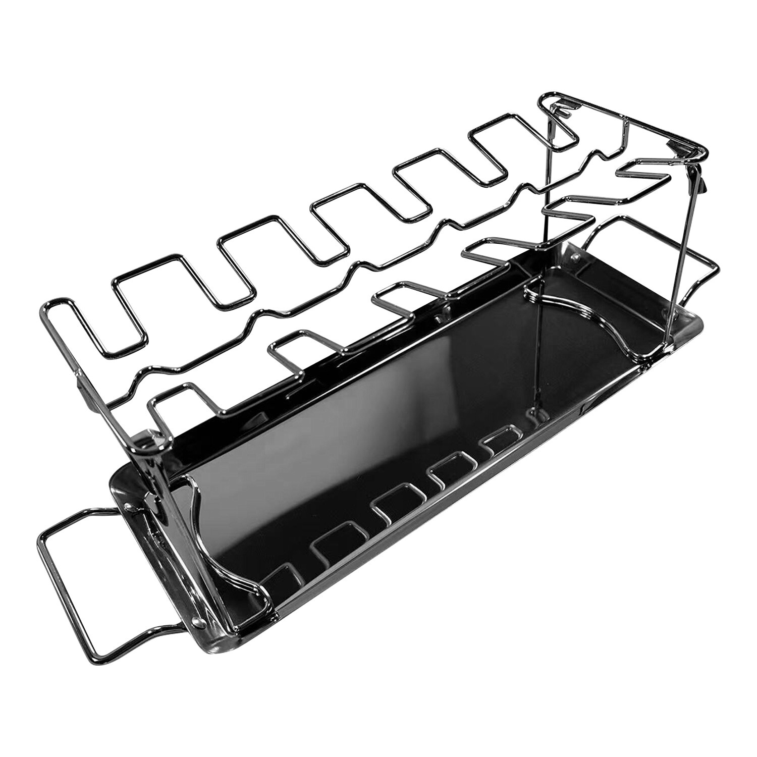 Grill, smoke and slow cook with this stainless steel Chicken Drumstick Rack, offering an easy way to cook your chicken legs. It features a large rack that can hold 12 pieces at a time, while the pan at the bottom helps you collect the juices and grease and offers additional cooking space for veggies. The two wide handles on the sides give you control while offering protection. Perfect to use with smokers and BBQs, the rack ensures that your drumsticks are cooked to perfection.