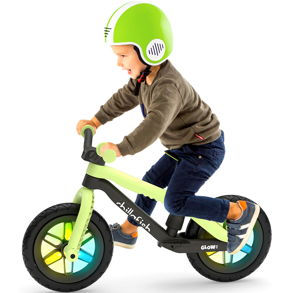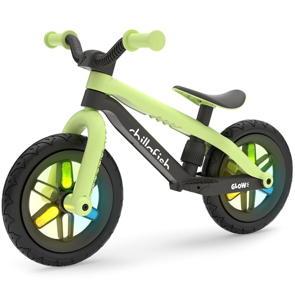 Chillafish BMXie Glow is the first balance bike with 12 inch integrated light-up wheels when riding for extra fun and visibility. The LED lights in the wheels don't need any batteries, they are simply powered by riding the BMXie Glow. The faster you go, the brighter they glow. The real BMX-styled bicycle frame with oversized tubing makes riding so much fun. BMXie Glow is built from reinforced plastics and is therefore very lightweight (3,8 kg) which makes it very easy to carry, both for your toddler and for you as parent. The airless 12-inch Rubber Skin tires not only give perfect grip, but you also don’t have to inflate them anymore! From now on, only fun! BMXie Glow seat adjusts without tools from 12,6-16,1 inch / 32-41 cm. Is your seat too high or too low? Just turn, pull and lock, simple as that! The light-up wheels are a fun extra for kids and provide extra visibility when riding. We keep on improving within the BMXie collection with even more features and further improved engineering. This is for sure the coolest balance bike in the world! Your toddler will enjoy this stunningly cool designed bike from the age of 2-5 years. Recommended height of your child: 34,3-43,3 inch / 87-110 cm.