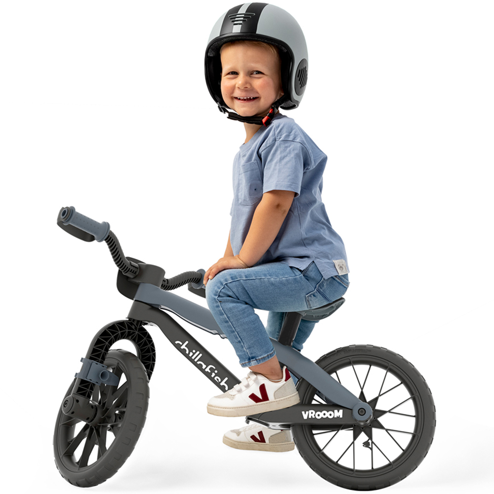 The Chillafish BMXie Vrooom gets kids excited while learning multiple skills. BMXie Vrooom is a multi-play balance trainer and now comes with sound ‘turbo cards’. Learning balance on a balance bike gets even better: insert the Turbo Cards to make real motor sounds while riding, VROOM VROOOM. The 3 included Turbo Cards make roaring noises at the front fork. The Turbo Cards have different settings to adjust the sound level. Great to help kids develop their sensory and fine motor skills. It’s like they are riding a real motorcycle, especially with the hand protectors: they protect the hands and make you look like a boss! Airless EVA tires give you the greatest comfort: you don't even need to inflate them anymore. No puncture risk, from now on only fun! Need anything more? Maybe a detachable front number plate with various stickers for cool customization? Yup, we got that too! BMXie balance bike has been in the Chillafish family since the very beginning and is one of the most widely used balance bikes in the world. This is our fifth generation of the BMXie bike, with improved engineering and features. Chillafish products are trusted by over 1 million households around the globe. Seat adjusts without tools from 12,6-16,1 inch / 32-41 cm. Recommended kid's height: 34,3-43,3 inch / 87-110 cm