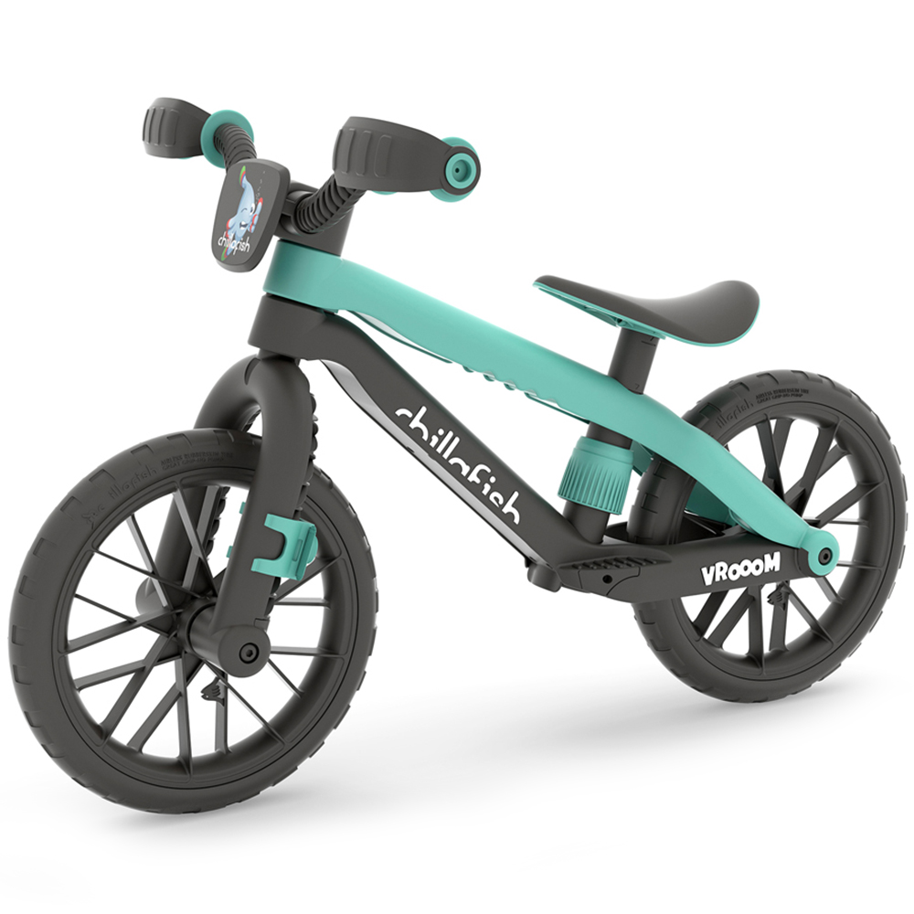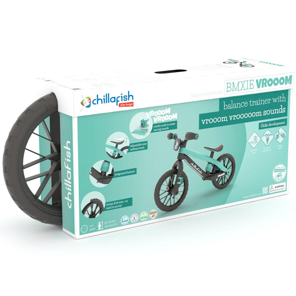The Chillafish BMXie Vrooom gets kids excited while learning multiple skills. BMXie Vrooom is a multi-play balance trainer and now comes with sound ‘turbo cards’. Learning balance on a balance bike gets even better: insert the Turbo Cards to make real motor sounds while riding, VROOM VROOOM. The 3 included Turbo Cards make roaring noises at the front fork - VROOM VROOOM! The Turbo Cards have different settings to adjust the sound level. Great to help kids develop their sensory and fine motor skills. It’s like they are riding a real motorcycle, especially with the hand protectors: they protect the hands and make you look like a boss! Airless EVA tires give you the greatest comfort: you don't even need to inflate them anymore. No puncture risk, from now on only fun! Need anything more? Maybe a detachable front number plate with various stickers for cool customization? Yup, we got that too! BMXie balance bike has been in the Chillafish family since the very beginning and is one of the most widely used balance bikes in the world. This is our fifth generation of the BMXie bike, with improved engineering and features. Chillafish products are trusted by over 1 million households around the globe. Seat adjusts without tools from 12,6-16,1 inch / 32-41 cm. Recommended kid's height: 34,3-43,3 inch / 87-110 cm