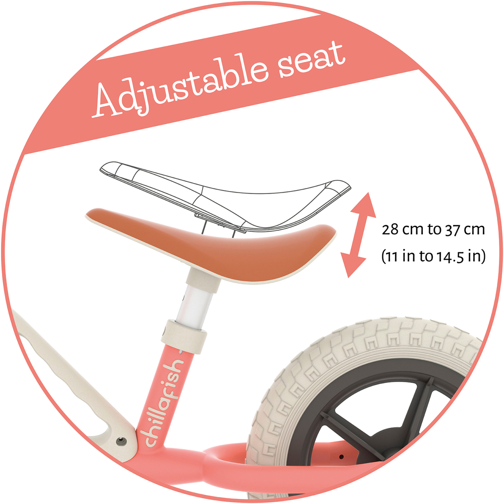 Chillafish Charlie is a hyper lightweight 10" balance trainer with puncture-proof tires and a high-quality metal frame weighing only 5,5 lbs / 2,5 kg. The perfect toy to train your toddler gross motor skills, balance and steering. The custom molded comfort seat and handlebar are easily adjustable in height. The seat is adjustable from 11-14,6 inch / 28-37 cm and the handlebar can adjust from 18,9-20,1 inch / 48-51 cm. Thanks to its lightweight frame your toddler can easily control the bike and, in combination with the integrated carry handle, it makes it easy us parents to carry it as well. The no-puncture 10-inch EVA tires are really comfortable: no need to inflate the tires anymore, no puncture risk, from now on only fun! Charlie comes in a myriad of stylish colours, from cool red up to stylish vintage variants as well. There’s a style for every child. Integrating high-quality design in a very lightweight and intuitive product at very sharp pricing, Charlie for sure is the best value for money balance bike you'll find. Years of fun and skills to train! Charlie balance bike will teach your kids to ride a real bicycle in no time! Recommended age: 18-48 months Recommended kids height: 31,5-41,3 inch / 80-105 cm