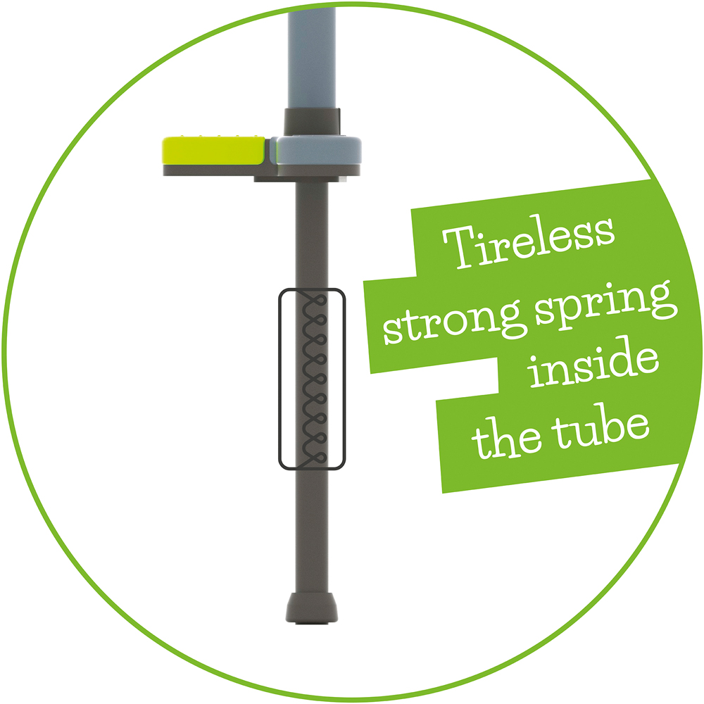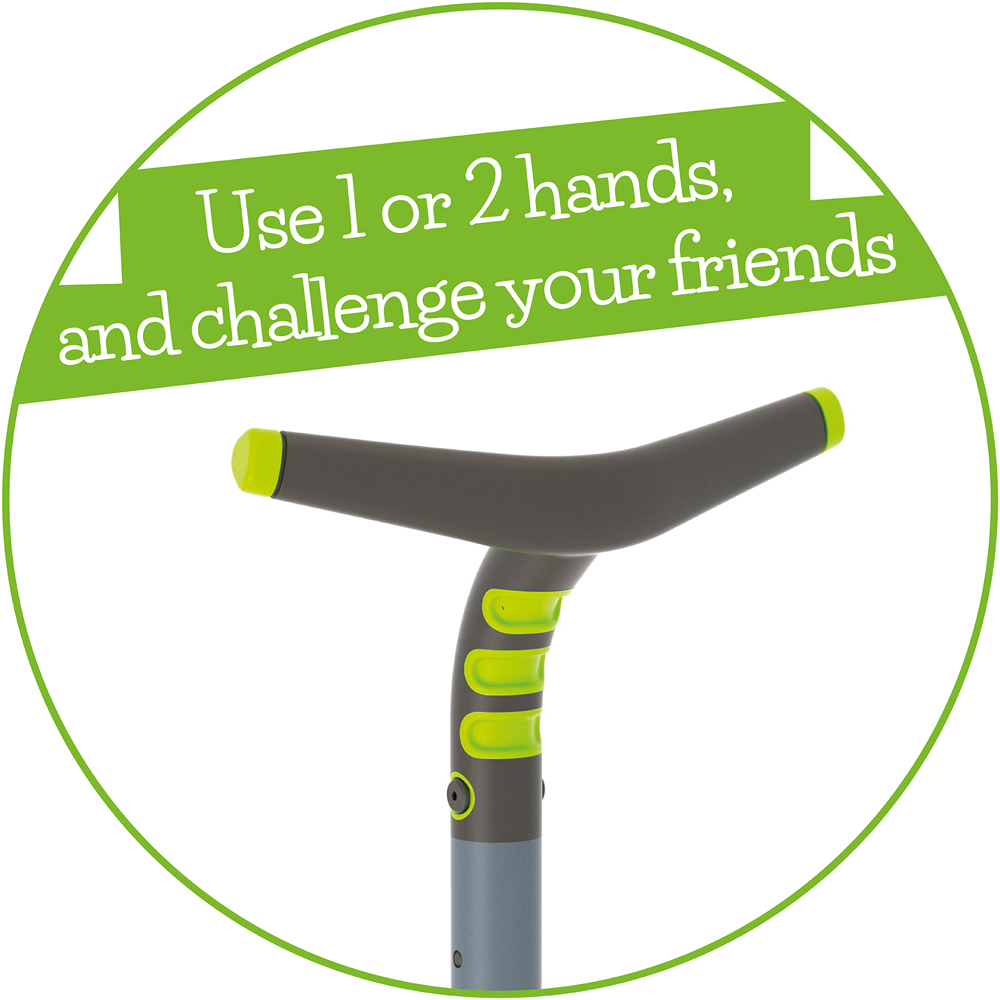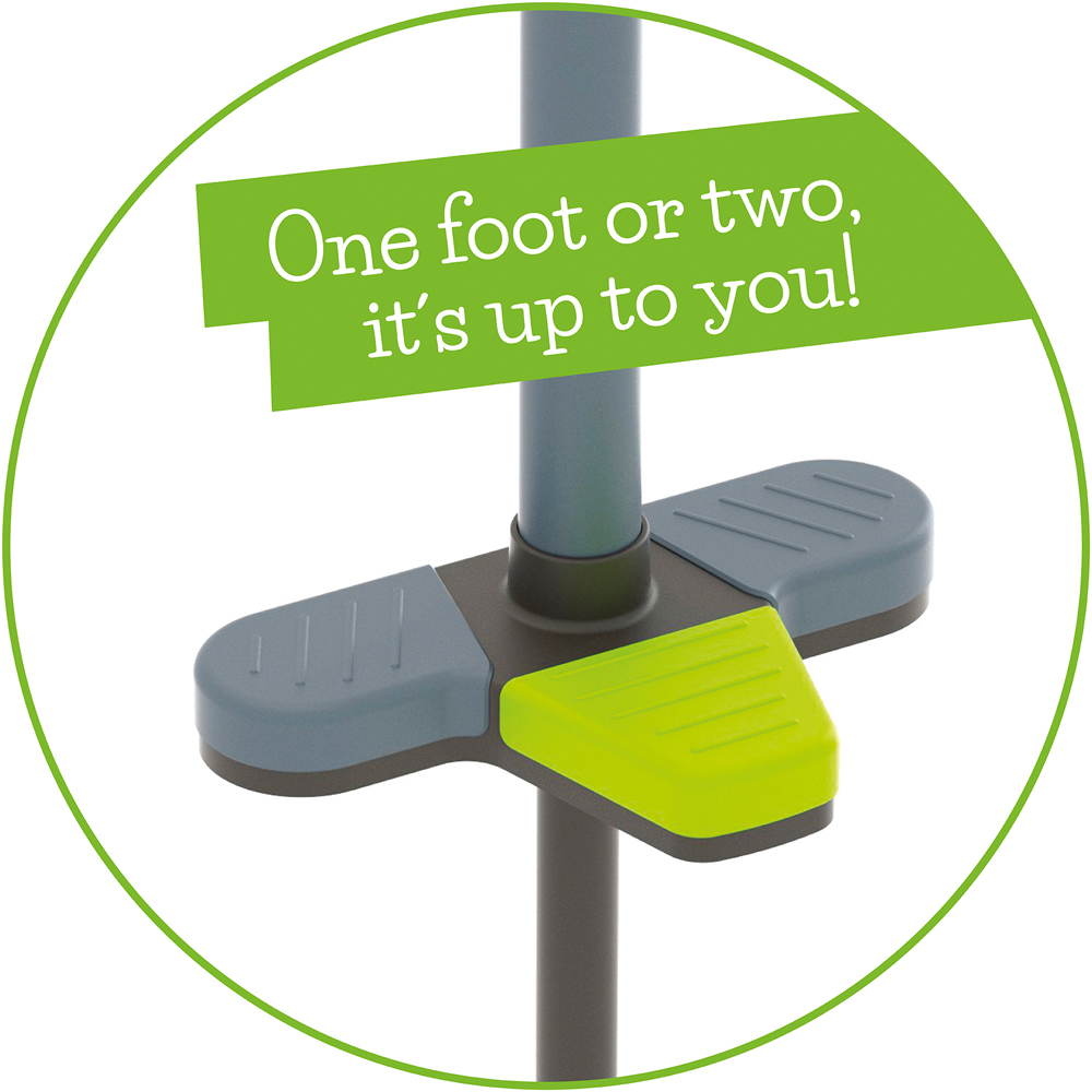 Chillafish Poogi is a pogo stick designed with fun extra challenges. Can you pogo with 1 hand? Or even with 1 foot? This fun pogo stick has a centralized extra foot pedal and an ergonomic handgrip. Practice balance by switching from two feet to one! And then try to let go of a hand too, step by step. The versatile soft-touch handgrip is designed for one or two hands. It's great for gross motor skills development and physical fitness. Play longer! Comes fully assembled in the packaging, ready to bounce!