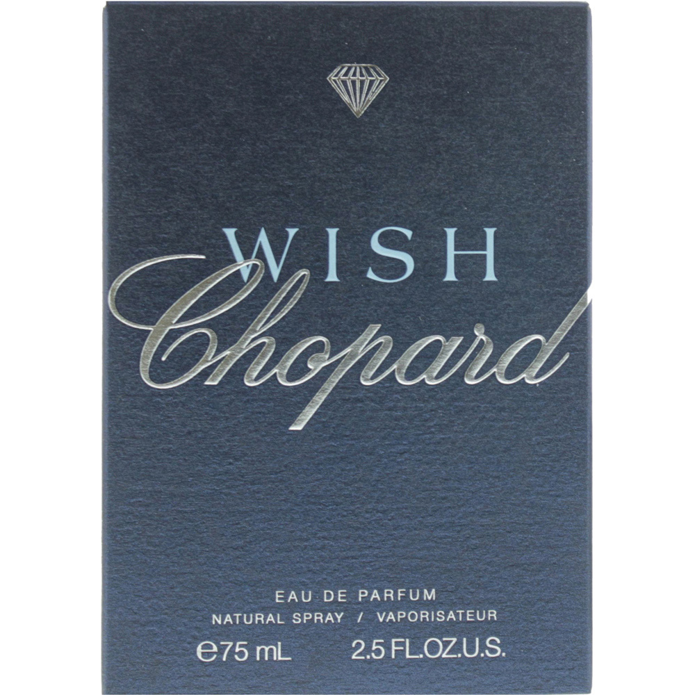Indulge in the oriental vanilla allure of Chopard Wish Eau De Parfum 75ml, launched in 1999. This fragrance features top notes of honeysuckle, strawberry, black locust, orange blossom, coconut, gooseberry, Brazilian rosewood, pear, black currant, and yuzu. The heart includes honey, violet, orchid, milk, heliotrope, lily-of-the-valley, jasmine, magnolia, and osmanthus. The base is composed of sandalwood, amber, patchouli, vanilla, caramel, incense, tonka bean, and coffee.